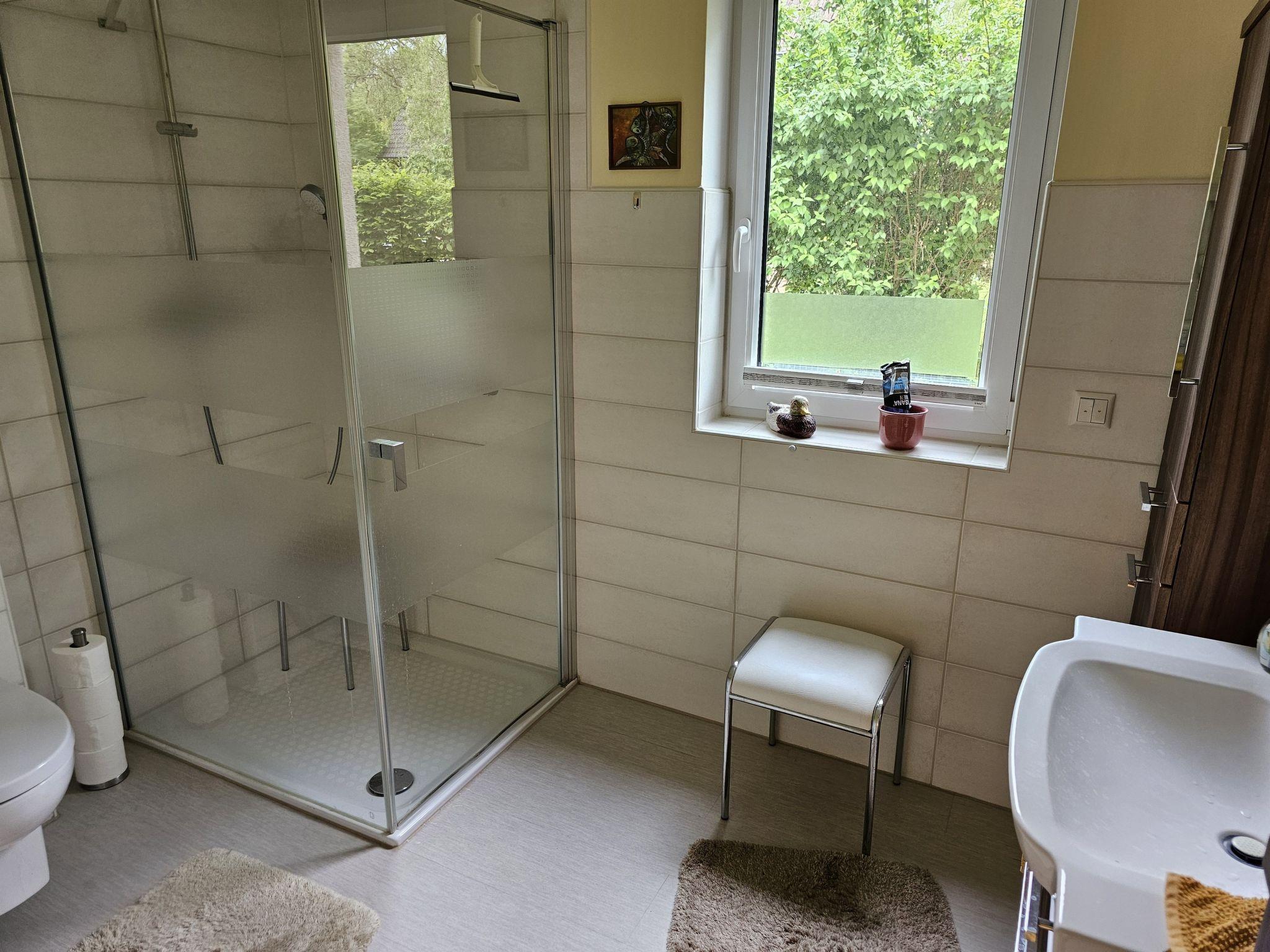 Quiet, peaceful dogs up to 60 cm shoulder height are very welcome here. The flat is located on the ground floor and is therefore barrier-free. Door widths and further details are available on request.