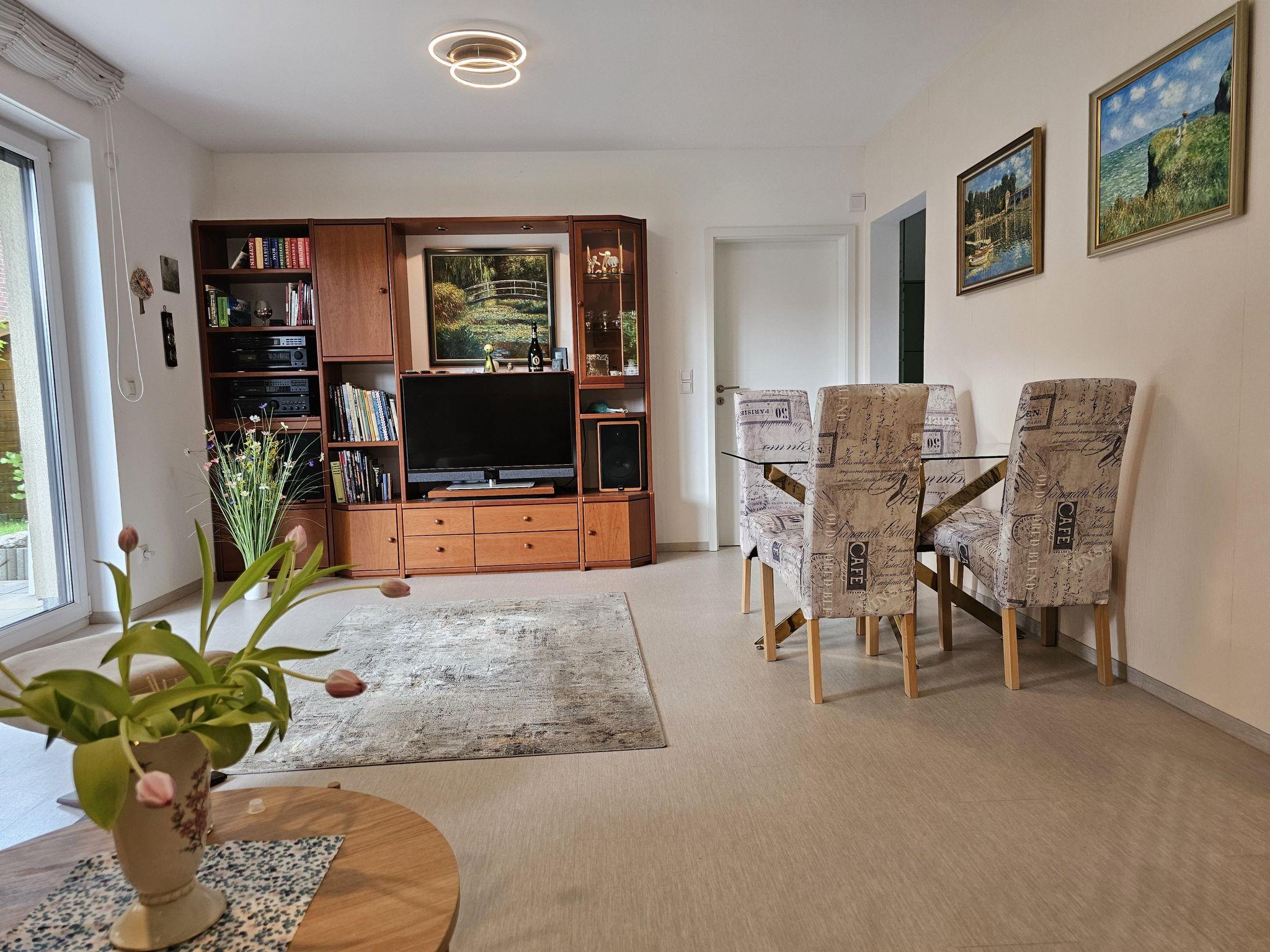 Built in 2015, this flat offers 89 square metres of pure relaxation. With its own garden, covered terrace and central, quiet location in a cul-de-sac, it is the ideal retreat. Modern facilities such as a walk-in shower, fully equipped kitchen, underfloor heating, satellite TV and free WiFi ensure comfort. A covered parking space and permission for quiet dogs up to 60 cm shoulder height round off the offer. Experience pure relaxation here!