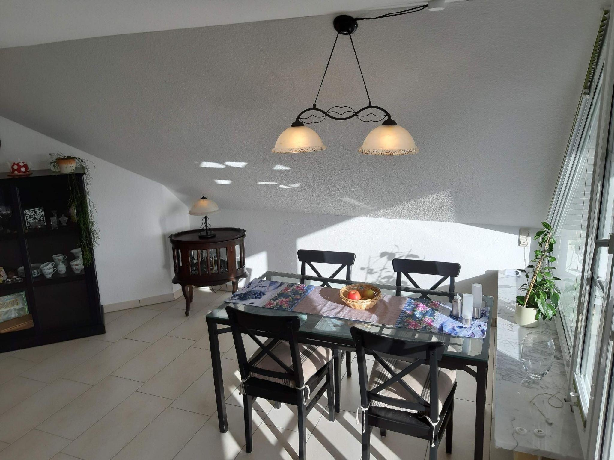 The hallway also leads to the bedroom with a double bed and separate 200 x 90 cm mattresses. In addition to a chest of drawers, you will find a "mute servant", a seating area with a couch and table, as well as a second television. From here you can access the small south-facing balcony.