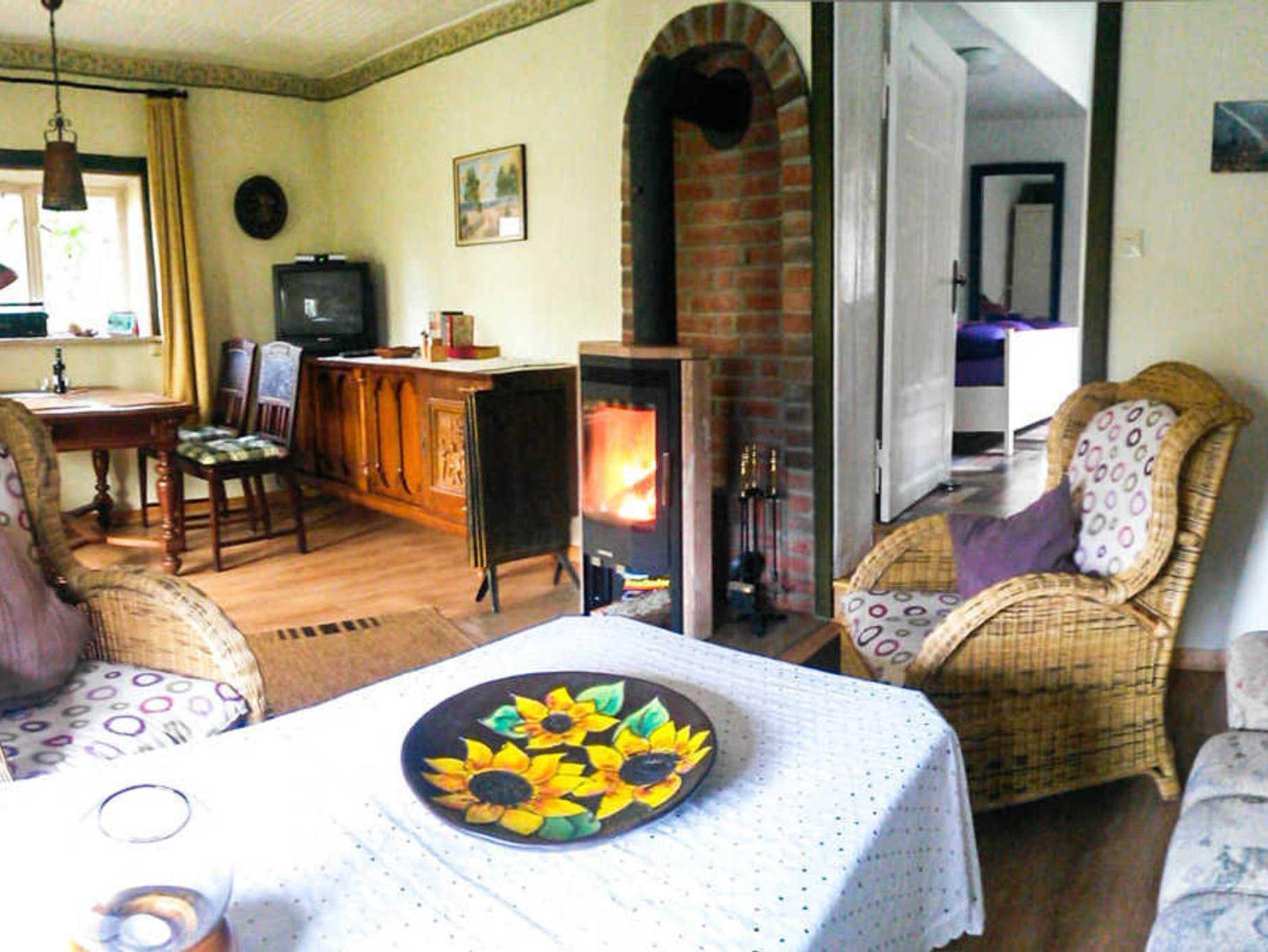 • 1 Wohnraum mit Schlafsofa zum getrennten Übernachten und Kaminofen,