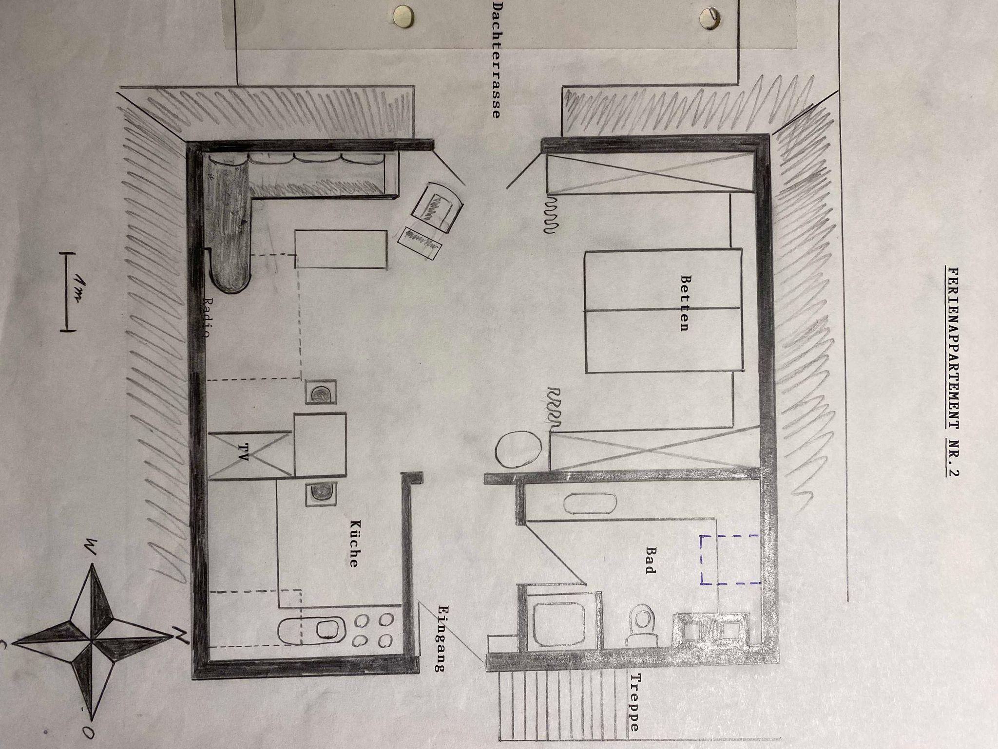 • 1-Raum-Wohnung (45 qm) im OG mit Dachterrasse nach Süden und Westen ausgerichtet,