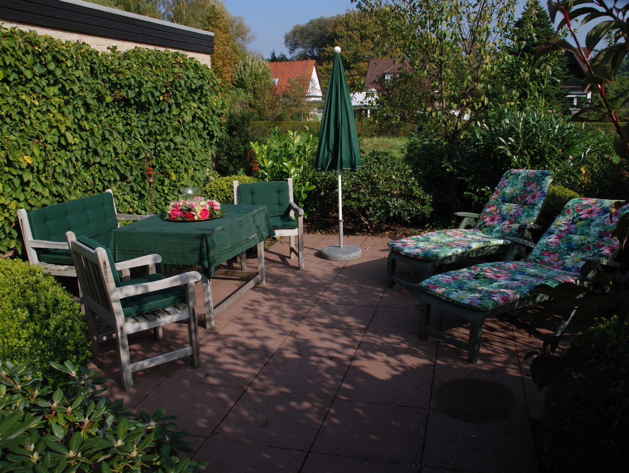 • Terrassenplatz im Garten mit Bestuhlung,