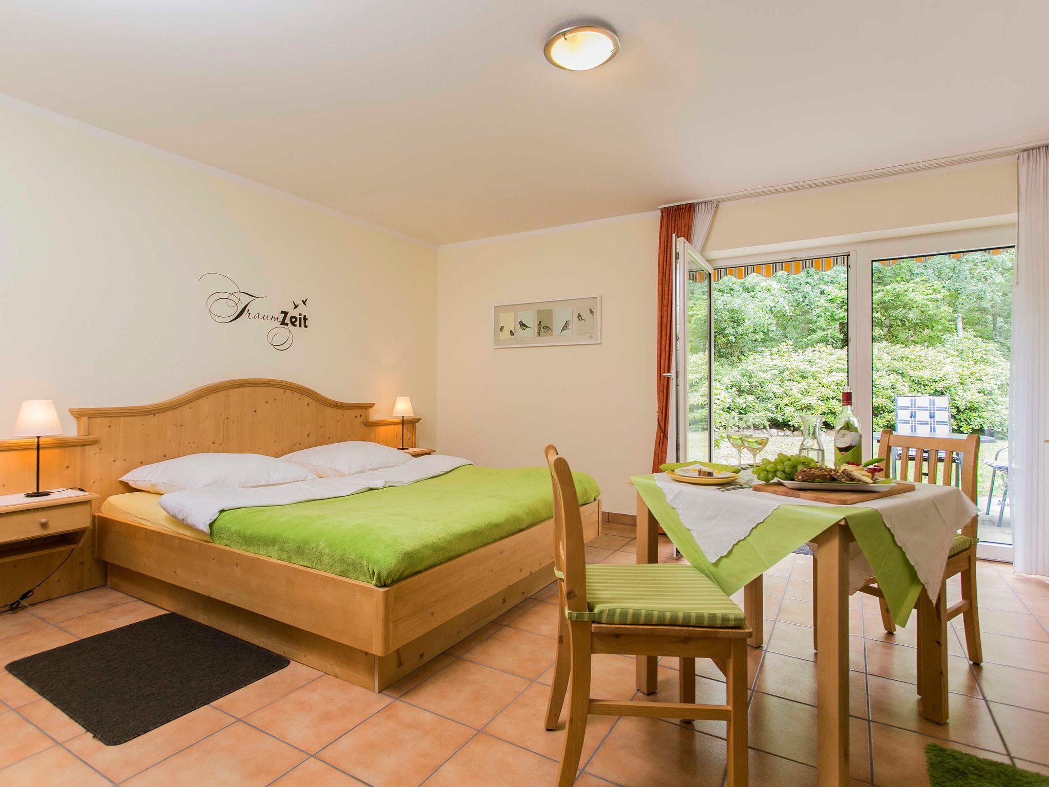 • 1 Wohn-Schlafraum mit Doppelbett in Komforthöhe (1,80 x 2,00 m),