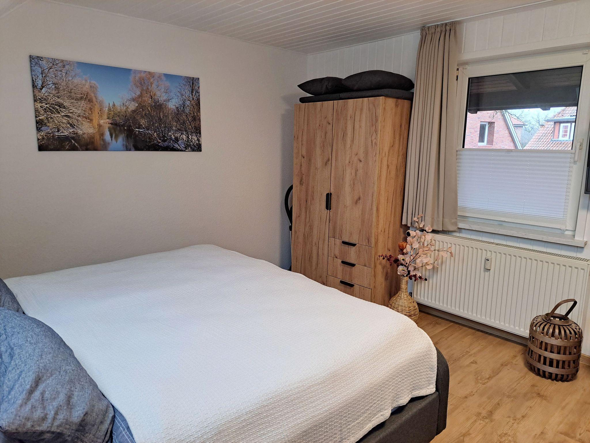 • 1 Doppelbett (1,80 x 2,00 m) mit Kleiderschrank,
