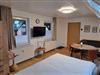 • Flat-TV (schwenkbar) und WLAN; Verdunkelungsvorhänge und Rolläden