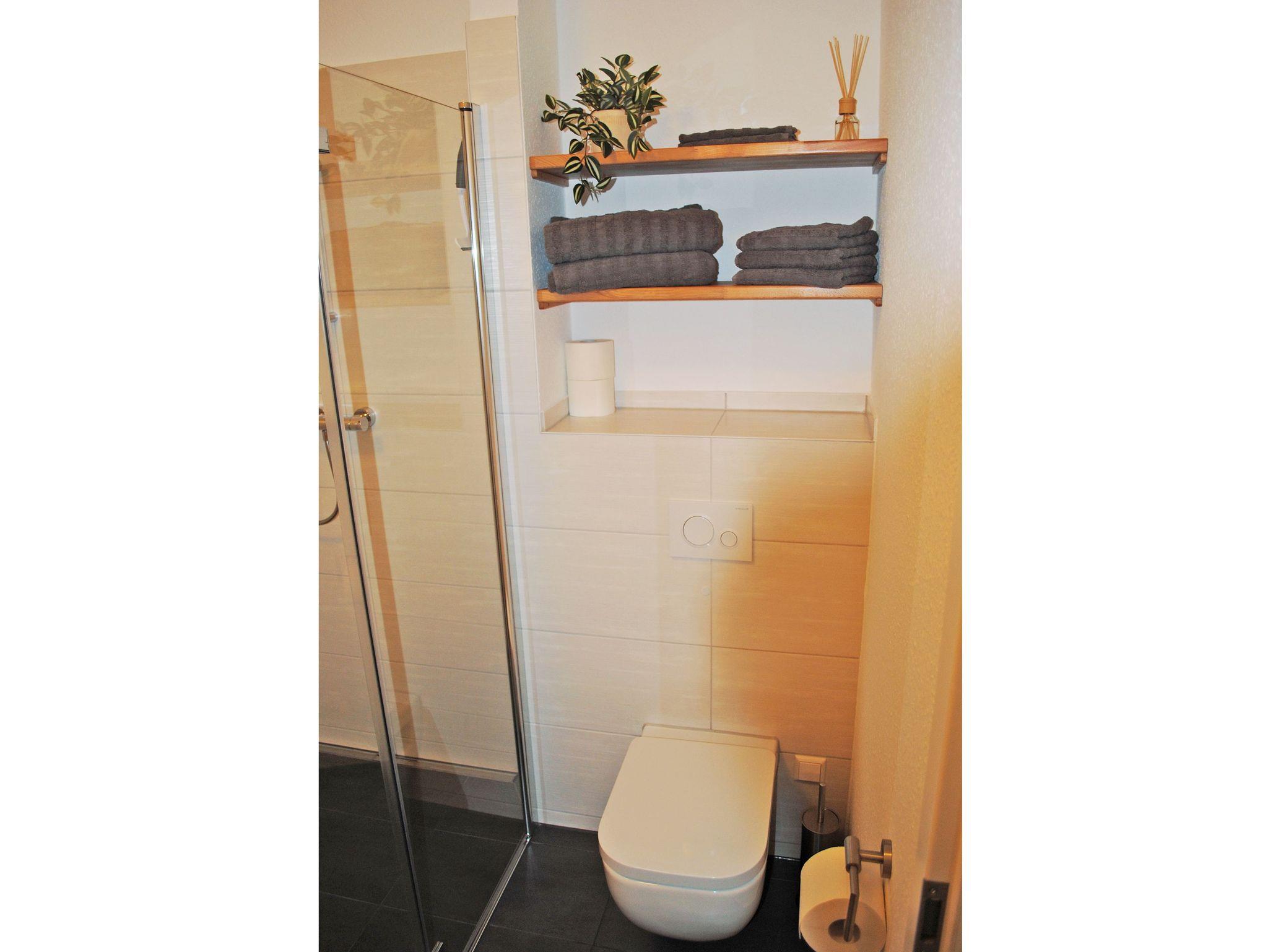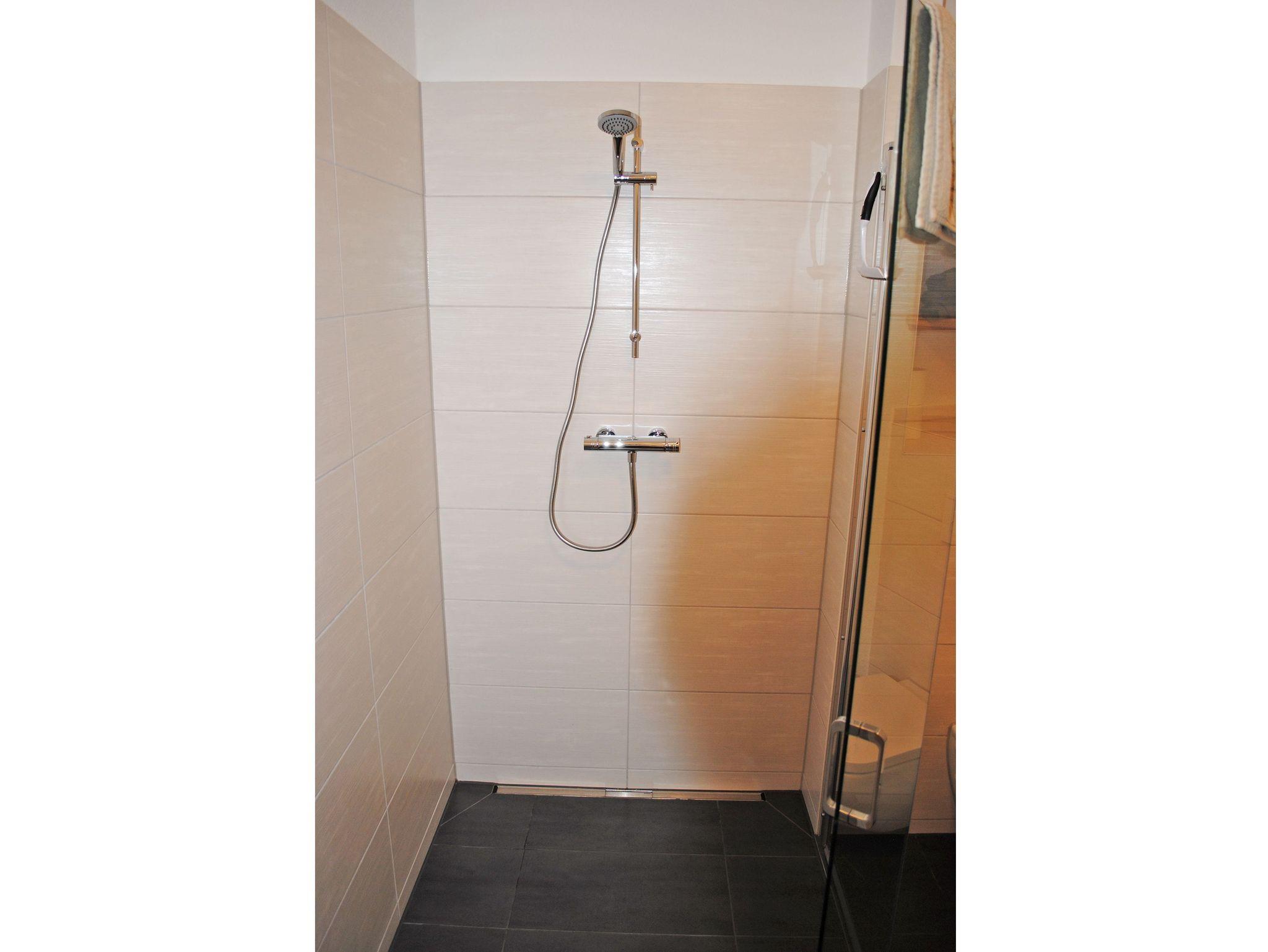 • 1 Duschbad mit ebenerdiger Dusche und Haarföhn;