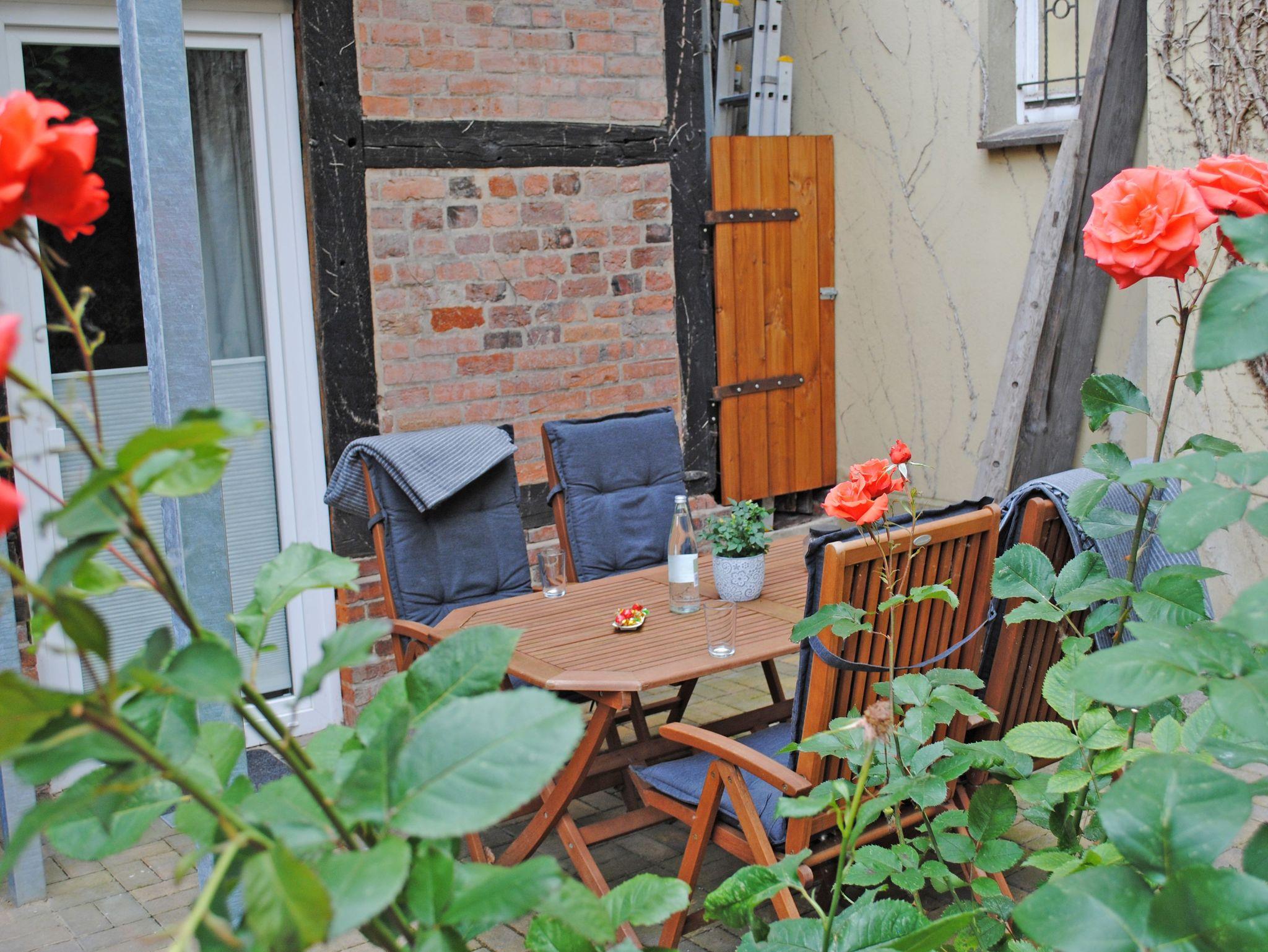 Die 60 qm Ferienwohnung im Erdgeschoss eines Mehrparteienhauses ist in der Fußgängerzone der Bad Bevenser Altstadt ruhig gelegen. Im Jahr 2023 wurde die Wohnung komplett saniert. Sie bietet mit zwei Schlafzimmern Platz für bis zu vier Personen. Darüber hinaus erwartet die Gäste eine geräumige Wohnküche mit einem Esstisch und einer großzügigen Sofalandschaft. Das Bad ist barrierearm mit einer ebenerdigen Dusche ausgestattet. Darüberhinaus verfügt die Wohnung über einen Abstellraum mit einer Waschmaschine. Im begrünten Hof steht den Gästen der Wohnung ein eigener Terrassenplatz mit Mobiliar zur Verfügung. Der eigene PKW kann in der angrenzenden Straße geparkt werden. Ein Parkausweis wird den Gästen zur Verfügung gestellt. Ihre Fahrräder können Gäste im abschließbaren Innenhof trocken unterstellen.