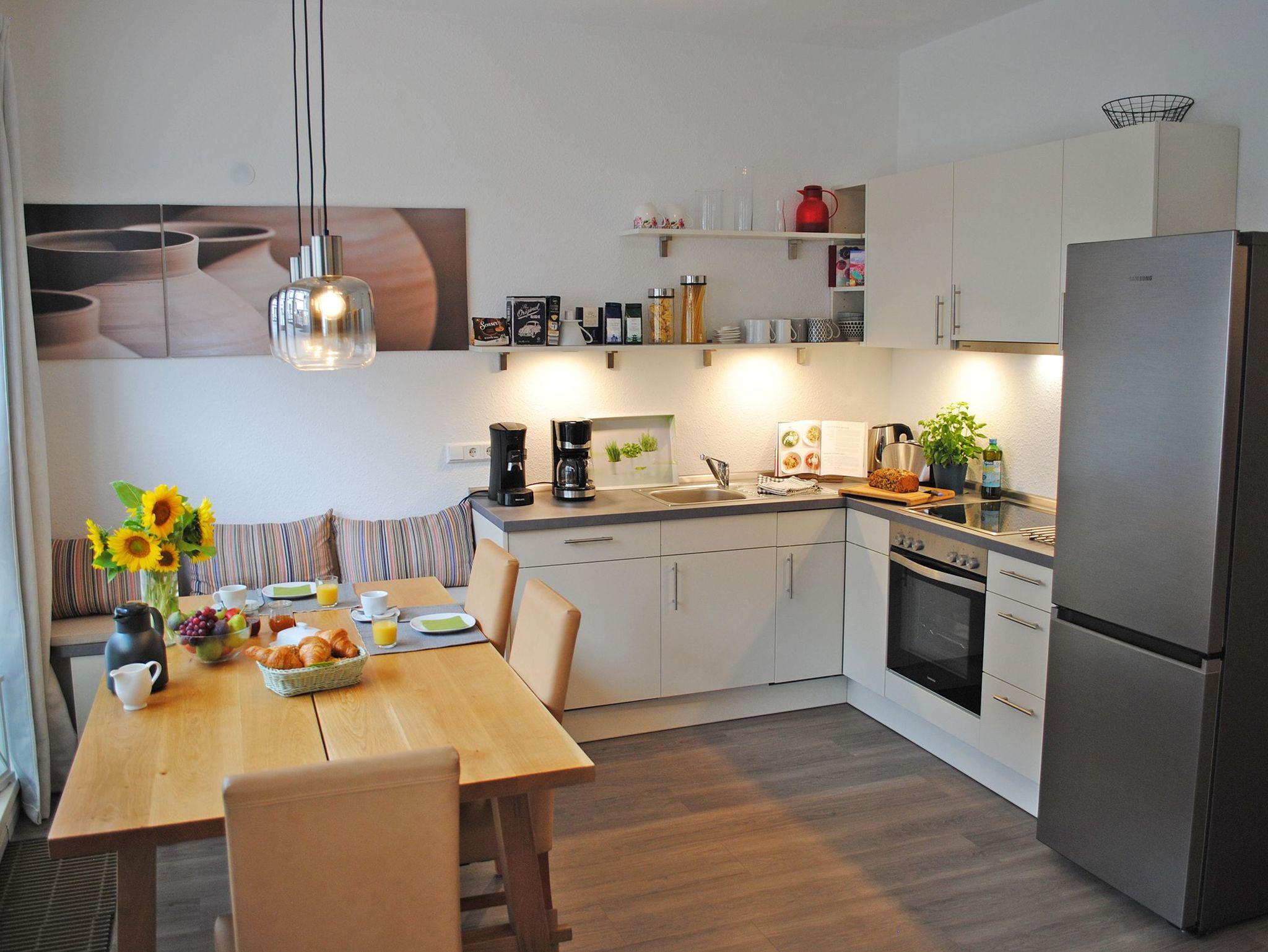 • 3-Zimmer-Wohnung im Erdgeschoss (60 qm) für bis zu 4 Personen;