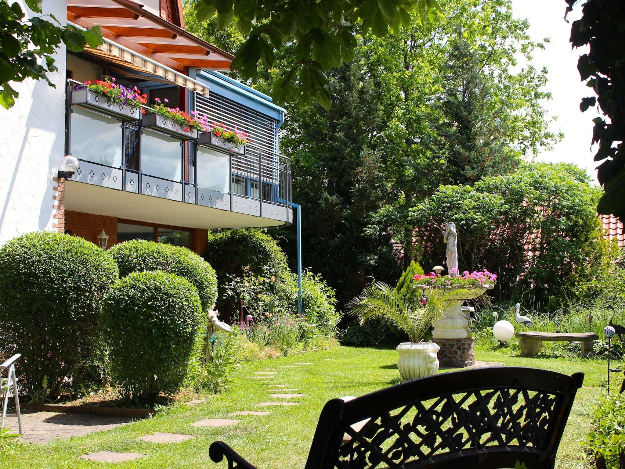 In unseren ca. 3000qm großen Garten mit Liegewiesen, Zierfischteichen (Biotope) und idyllischen Plätzen mit Grillmöglichkeit, können Sie die Seele baumeln lassen und den Alltag vergessen. Auch die Kleinsten werden sich bei uns sicherlich wohl fühlen: Im Spielgarten, können die Kinder nach Herzenslust sich austoben. Es steht ein Spielplatz mit Rutsche, Schaukel, Trampolin u.s.w zur Verfügung.