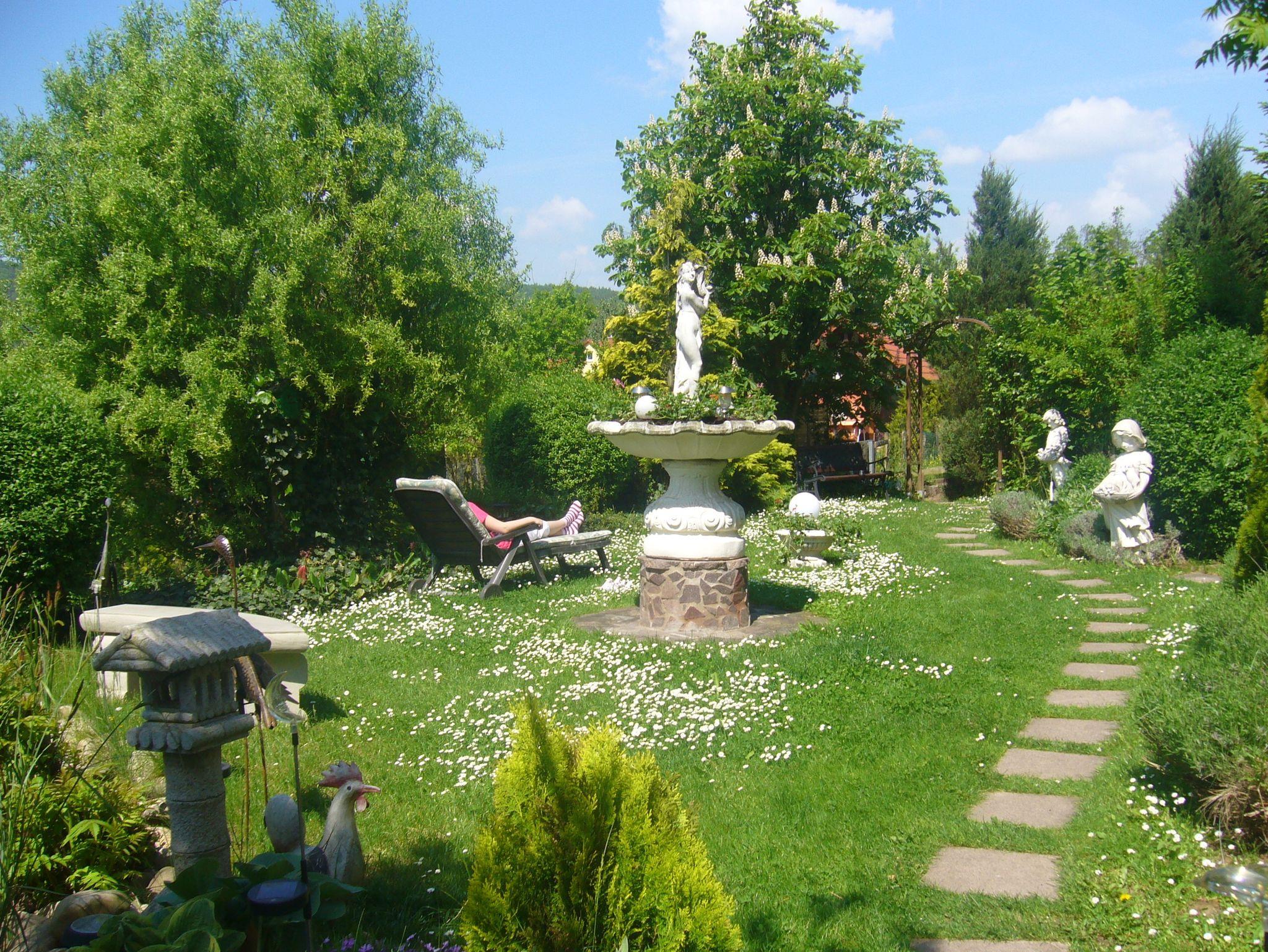 In unseren ca. 3000qm großen Garten mit Liegewiesen, Zierfischteichen (Biotope) und idyllischen Plätzen mit Grillmöglichkeit, können Sie die Seele baumeln lassen und den Alltag vergessen. Auch die Kleinsten werden sich bei uns sicherlich wohl fühlen: Im Spielgarten, können die Kinder nach Herzenslust sich austoben. Es steht ein Spielplatz mit Rutsche, Schaukel, Trampolin u.s.w zur Verfügung.