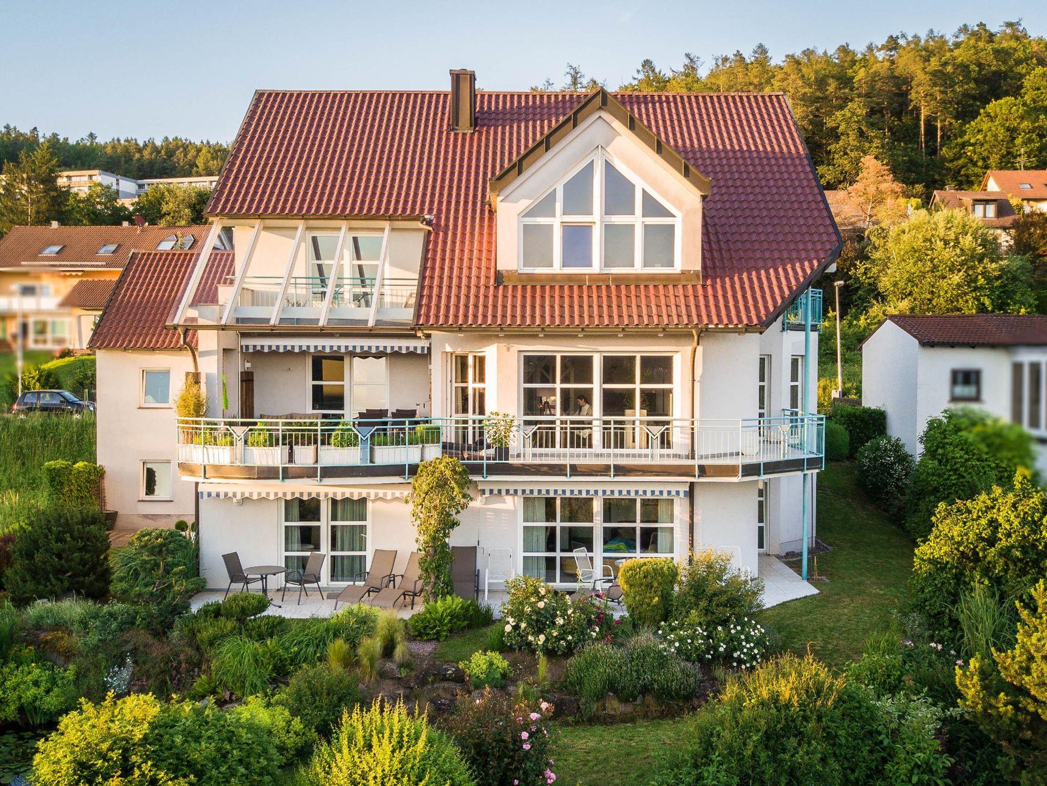 Wenn Sie auf die Terrasse Ihres Appartements treten, eröffnet sich Ihnen eine grandiose Aussicht über das Saaletal, von den Hügeln der Vorrhön im Norden bis nach Bad Kissingen im Süden.