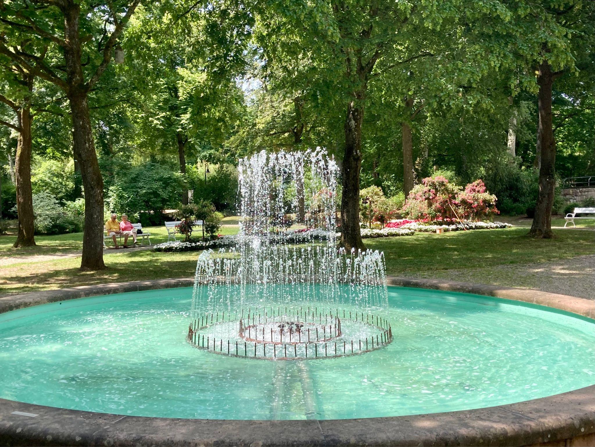 Der idyllische an den Saaleauen gelegene Biedermeier - Kurpark mit erfrischenden Kneippbecken, seiner Heilquelle, Cafe`s, Minigolfanlage und eine Vielzahl von blühenden Pflanzen, Palmen...