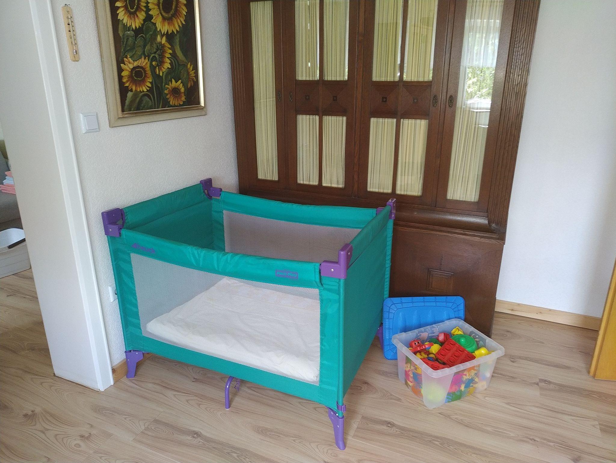 Kinderhochstuhl vorhanden. Auf Anfrage kann ein Babybett (Reisebett) (einmalig 15€) aufgestellt werden.