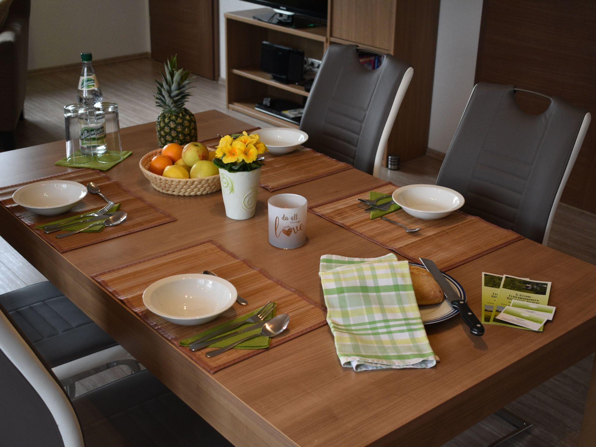 The outside area of the flat has also been thoughtfully designed. The windows have external blinds, which not only ensure a quiet night, but also a pleasant temperature during the day. A travel cot with duvet and pillow as well as a high chair are available for our younger guests to ensure a cosy stay for the youngest members of the family.