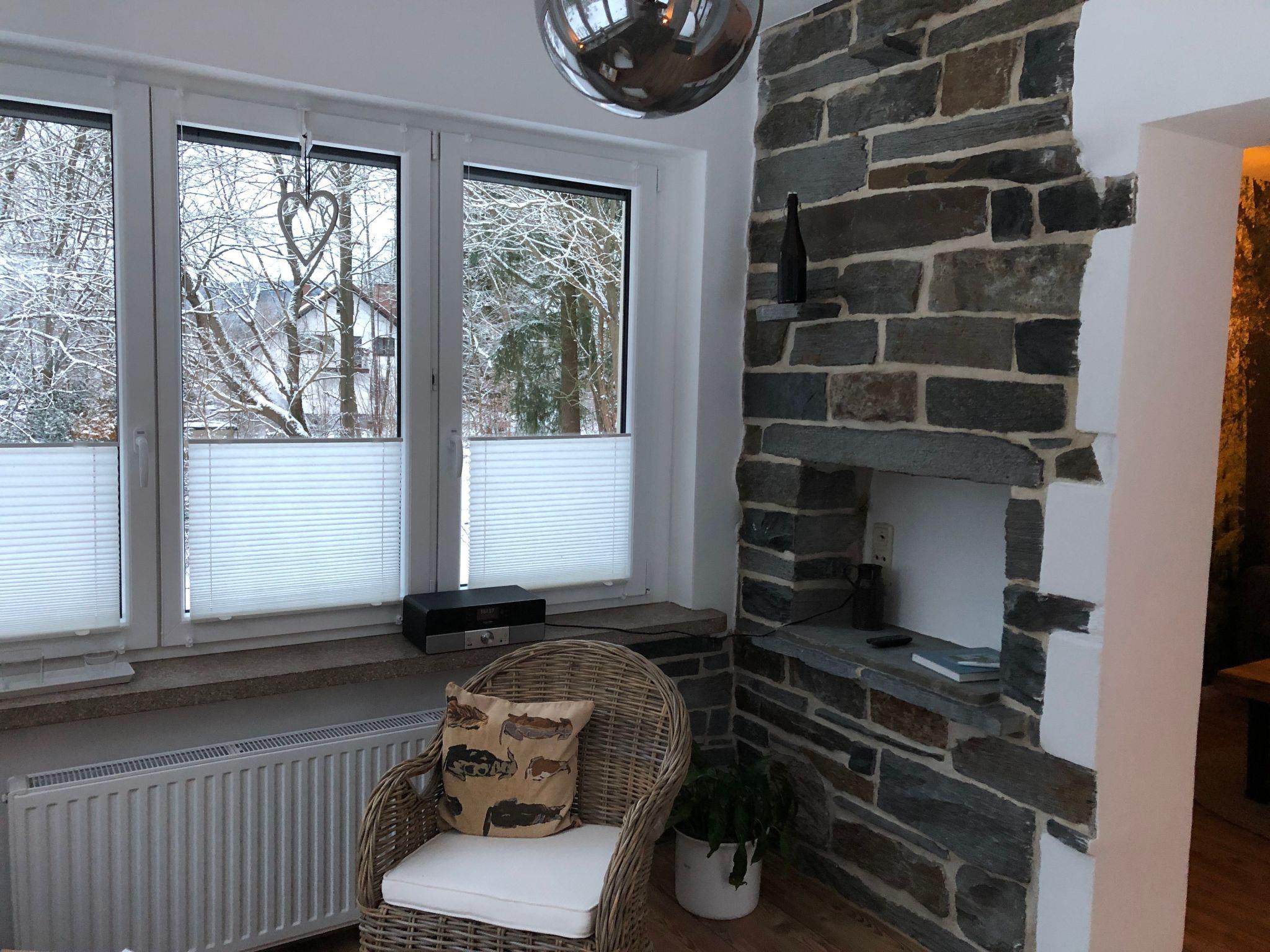 On the ground floor there is a fully equipped high-gloss kitchen with a large dining area and a view of the terrace and garden. There is also a cosy living room with TV and bay window.
