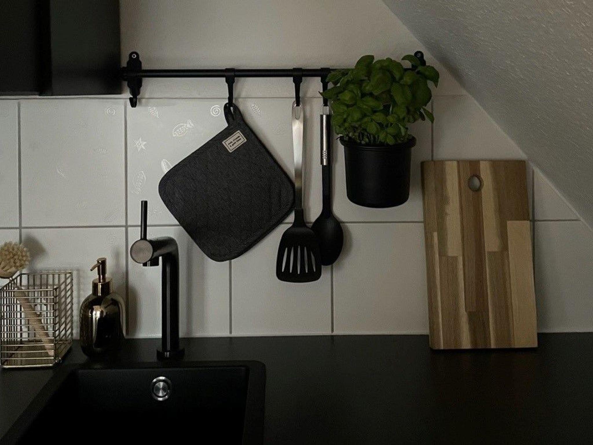 Die moderne Küche verfügt unter anderem über Geschirrspüler, Backofen, Kühlschrank, Toaster, Wasserkocher und sogar über eine Nespresso-Kapselmaschine.