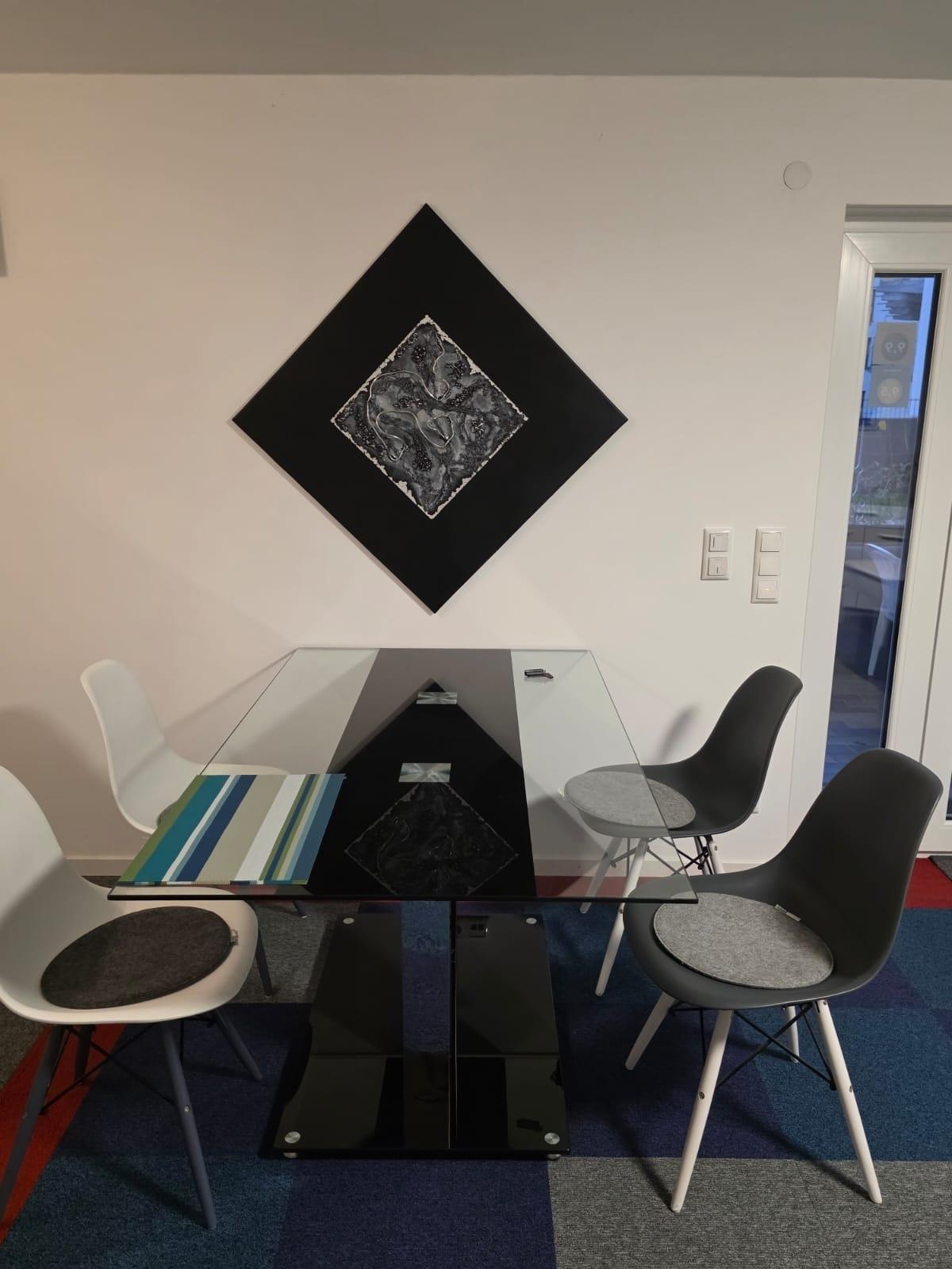 Die modern eingerichtete Ferienwohnung bietet einen offenen Wohn- und Essbereich mit voll ausgestatteter Küche – ideal für entspannte Abende oder gemeinsame Mahlzeiten.