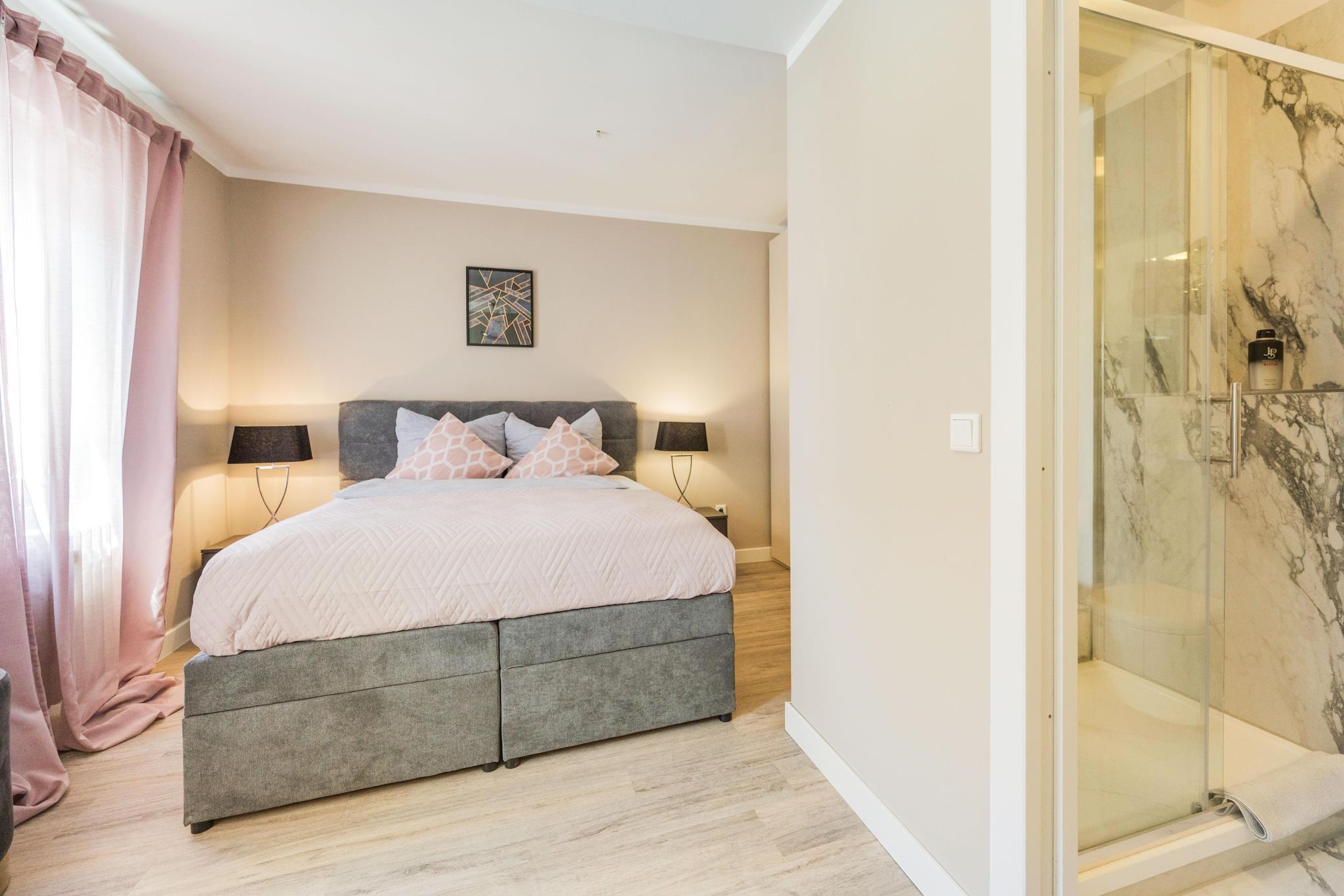 Flygt til denne charmerende lejlighed på første sal i Bad Camberg, ideel til to gæster, der søger komfort og landlig charme. Beliggende i den naturskønne Taunus-region er huset perfekt til morgenkaffe eller afslapning efter en dag med udforskning. Indenfor har lejligheden en kombineret stue/soveværelse med dobbeltseng, tv, spisebord og siddeområde. Det åbne køkken er fuldt udstyret med elkedel, brødrister, mikrobølgeovn og køleskab - perfekt til at tilberede lette måltider. Et moderne badeværelse fuldender rummet, og parkering på stedet sikrer nem ankomst og afrejse. Udforsk Bad Cambergs historiske gamle bydel, slentre gennem de nærliggende vandrestier, eller tag en tur ind i Taunusbjergene for at vandre og cykle. Limburg an der Lahn, med sin middelalderlige arkitektur og charme ved floden, ligger kun en kort køretur væk.