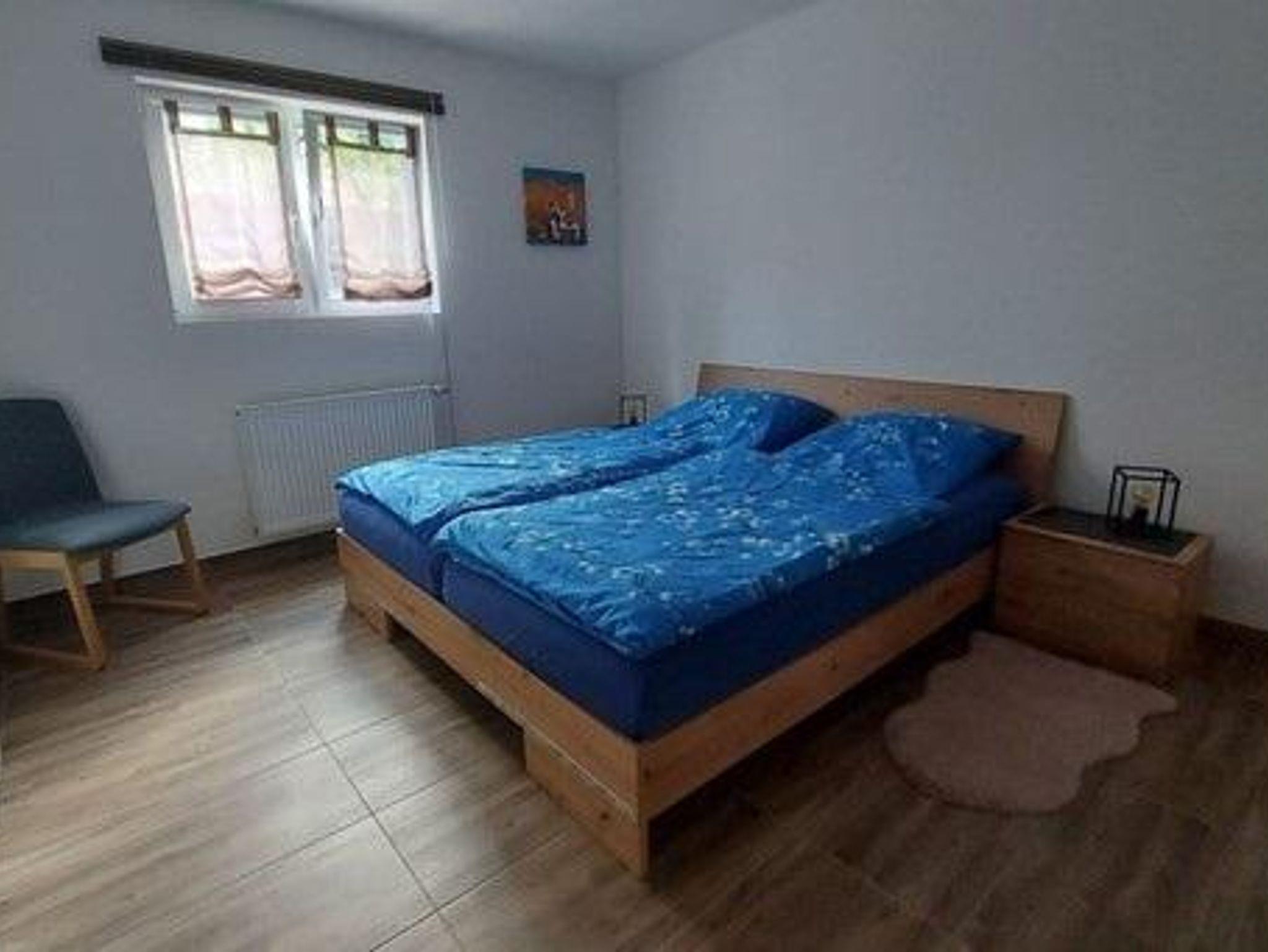 Die ca. 39 qm große Ferienwohnung liegt im Souterrain und ist modern eingerichtet. Sie verfügt über ein Wohnzimmer mit Küchenzeile, ein Schlafzimmer (mit Doppelbett) und ein Tageslichtbad mit Dusche, WC und Waschmaschine. Schlafcouch im Wohnzimmer für eine Person. Die Ferienwohnung ist vom Zentrum und den Sehenswürdigkeiten ca. 3,5 km entfernt. Ruhige Lage und idealer Ausgangspunkt zum Wandern; eine Bushaltestelle befindet sich in unmittelbarer Nähe, ein Supermarkt mit angeschlossener Bäckerei und Zeitschriftenkiosk befinden sich in ca. 600 m Entfernung.