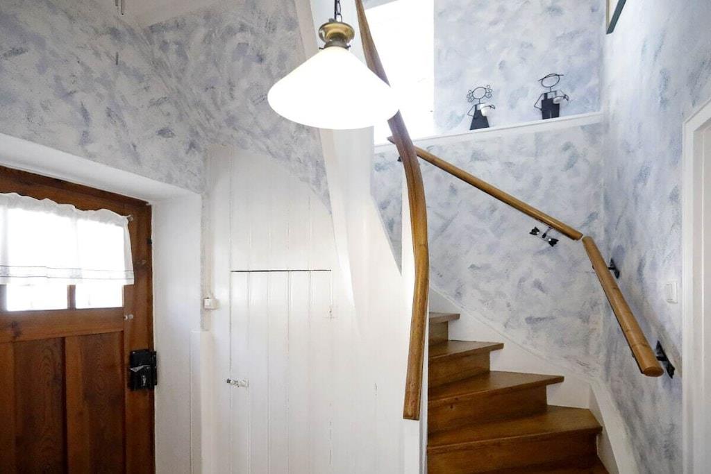 Stueetage: (soveværelse(, , enkeltsovesofa, dobbeltseng, Fjernsyn, radio), badeværelse(, , toilet, badekar, bruser, håndvask, føntørrer), bibliotek(bibliotek, radio), loungerum(, toilet, sauna, badekar, bruser, håndvask)) Mellemetage: (drying room(tørretumbler, vaskemaskine, strygebræt, strygejern, tørreskab)) På 1. etage: (Stue(, , , enkeltskabsseng, Fjernsyn, DVD-afspiller, radio, CD-afspiller, stereoanlæg), åbent køkken(, tekøkken, kakkelovn, radio, CD-afspiller, kogeplade, elkedel, brødrister, komfur, kaffemaskine, ovn, grill, mikrobølgeovn, opvaskemaskine , køleskab, fryser, Foodprocessor)) , , , Internetadgang, Internetadgang, balkon(havemøbler), varme, terrasse(havemøbler, solstole), parkering, trappegitter, telefon