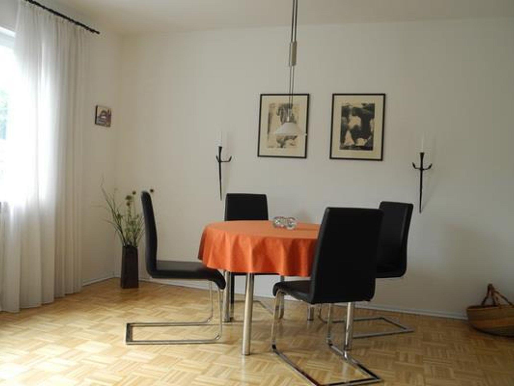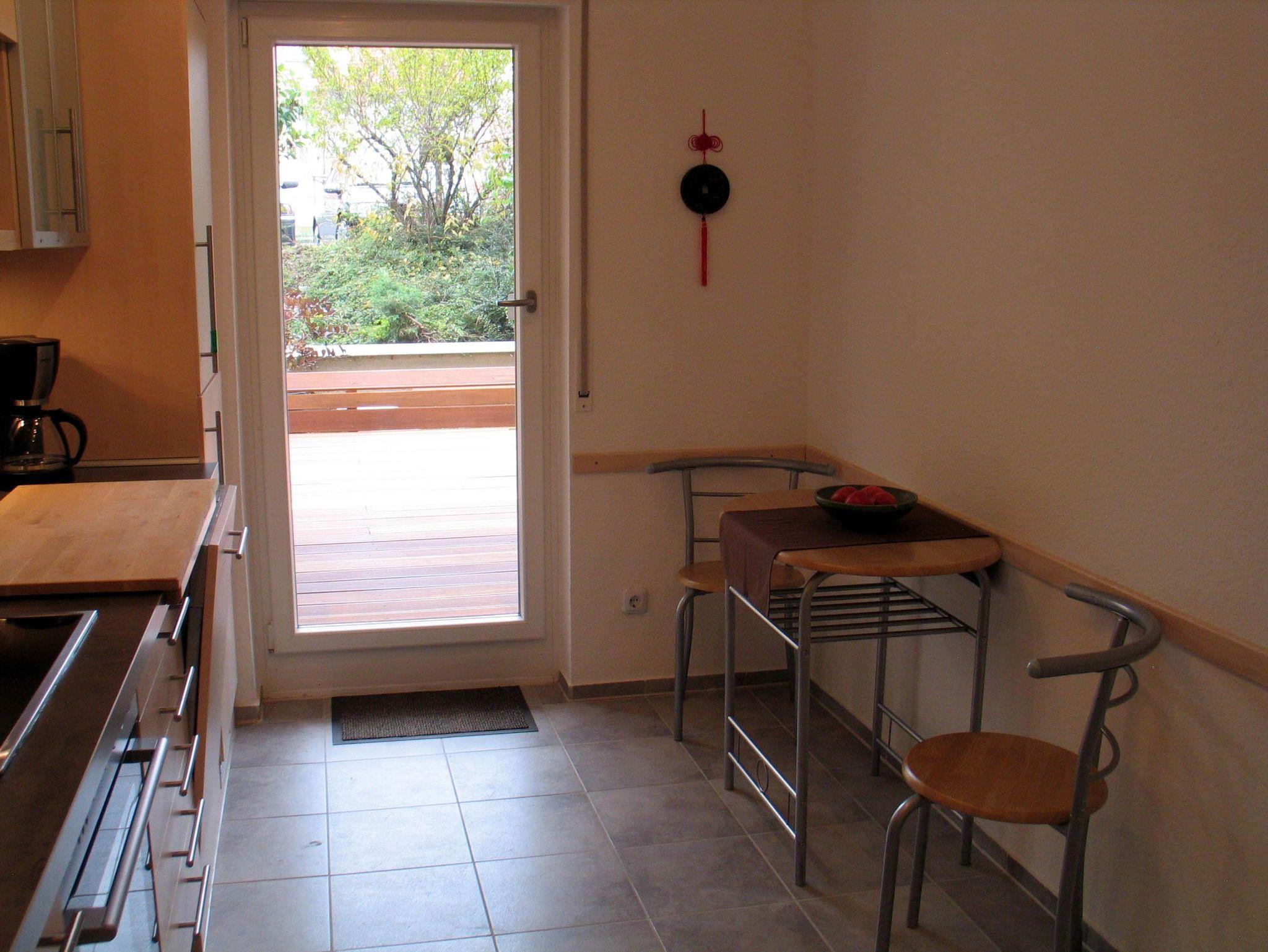 Alle Fenster sowie die große Terrasse (40 qm) öffnen sich ins Grüne nach Süden. Zum Kurpark sowie zur Innenstadt (Fußgängerzone) sind es weniger als 5 Gehminuten. Den Gästen steht ein PKW-Stellplatz zur Verfügung. Die Küche ist voll eingerichtet mit Herd, Backofen, Kühlschrank, Tiefkühlschrank, Mikrowelle und Geschirrspüler. Eine Waschmaschine befindet sich im Bad. Rauchen ist nur auf der Terrasse gestattet. Haustiere sind nicht erlaubt.