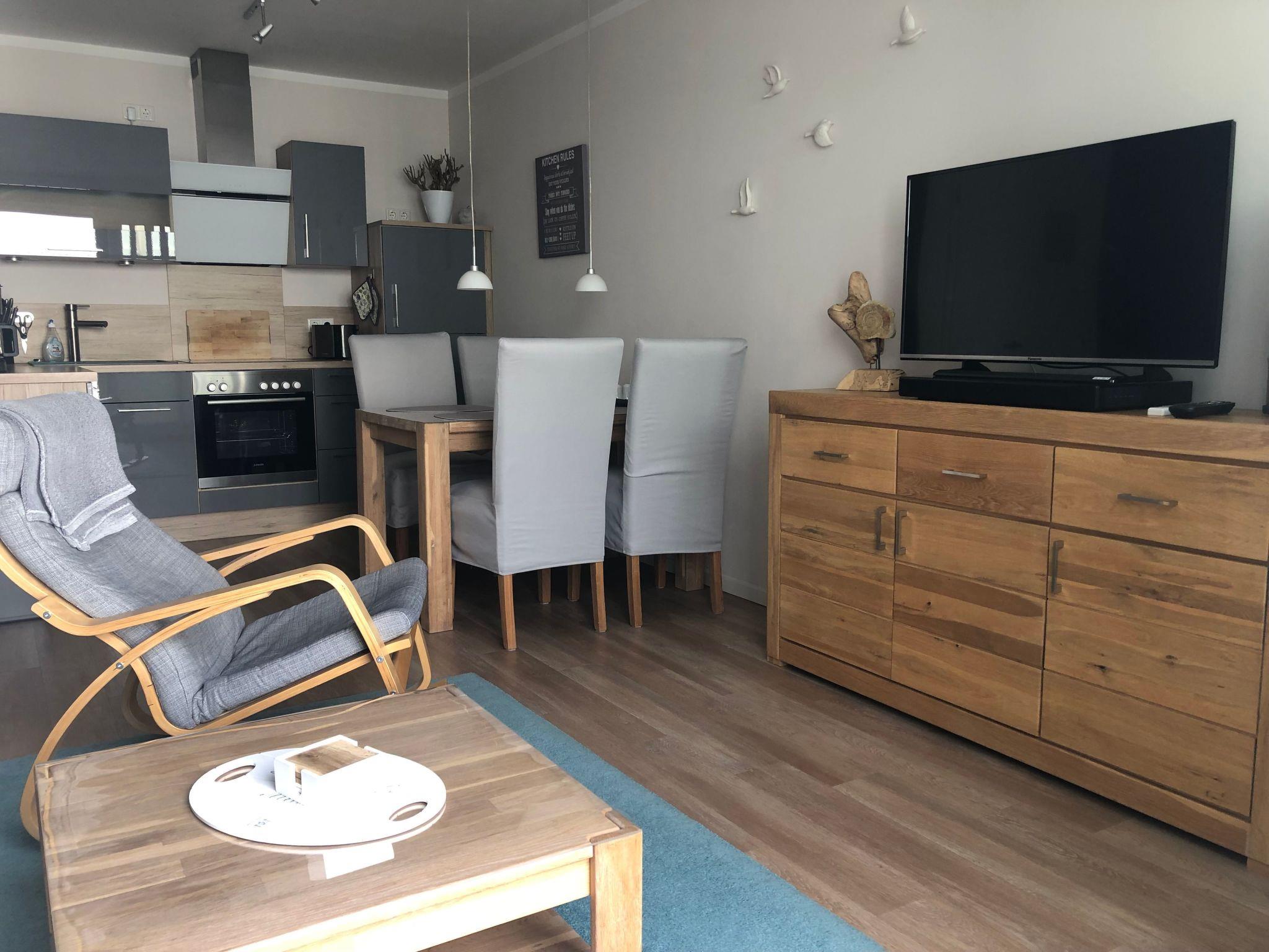 The holiday flat is located on the first floor (with lift) of a complex newly built in 2016 directly on the gently sloping sandy beach, just 50 m behind the beach promenade and only a few minutes' walk from the pier.