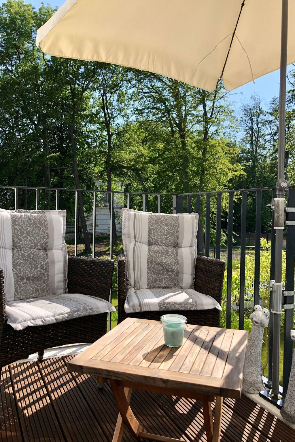 Outside, guests have access to a balcony with garden furniture, where they can enjoy the sun in the afternoon until sunset in the sea air. Guests can park their car in the underground car park free of charge.