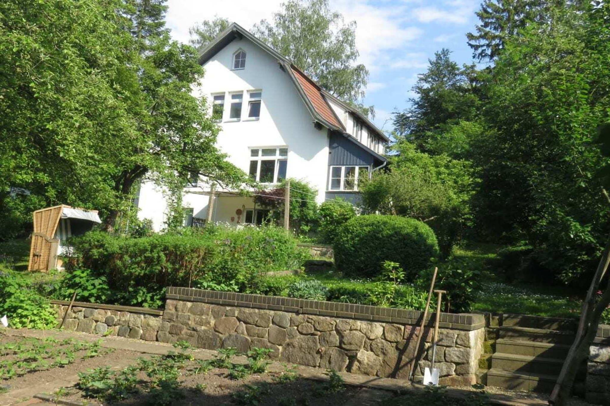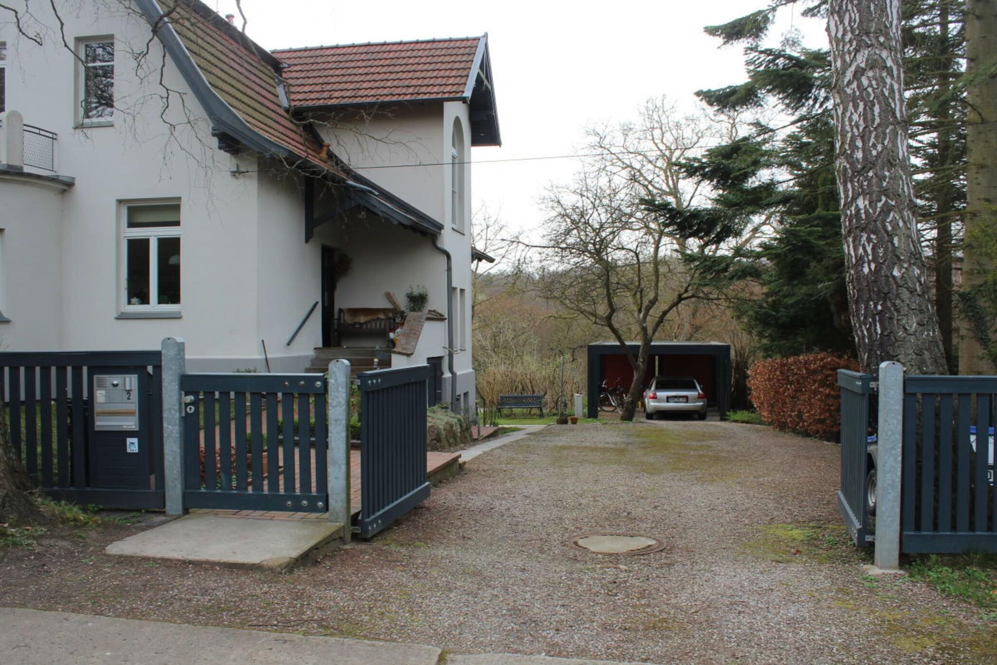 Ferienwohnung liegt in einem 2000 qm großem Grundstück in sehr ruhiger Lage mit einem blühenden Bauerngarten 100 m vom Waldrand entfernt. Die Straße ist für den Durchgangsverkehr gesperrt. Der Bahhof ist 5 Minuten und das Stadtzentrum 10 Minuten zu Fuß entfernt. Bei Anreise mit dem Zug Bahnhofstransfer bei Anfrage. Freisitz für Raucher, Leseecke am Teich. Es handelt sich um eine Maissonettewohnung über 2 Ebenen. Großes geräumiges Bad mit Wanne, Dusche und WC, im 1.OG befindet sich der Wohn-Schlafbereich und im 2.OG finden Sie eine komplett eingerichtete Küche.