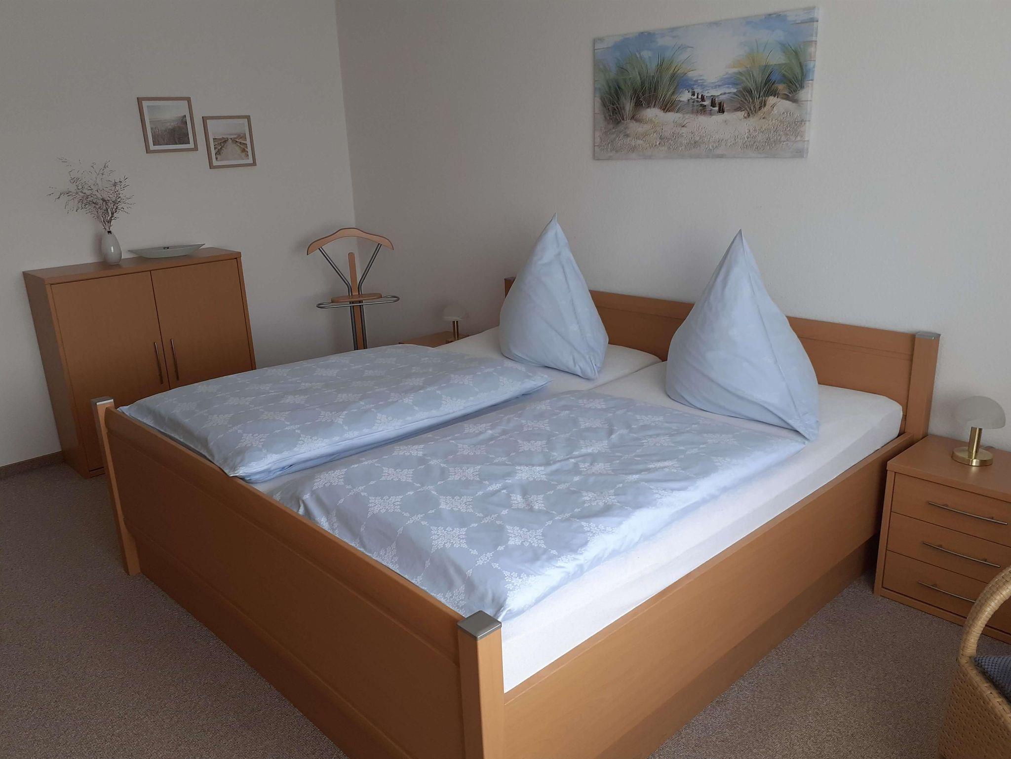 Die Ferienwohnung verfügt außerdem über Dusche/WC, Gäste-WC, Doppelzimmer mit Zugang zum Balkon, Einzelzimmer, SAT-TV im Wohnzimmer und Schlafzimmer und kostenloses W-LAN.
