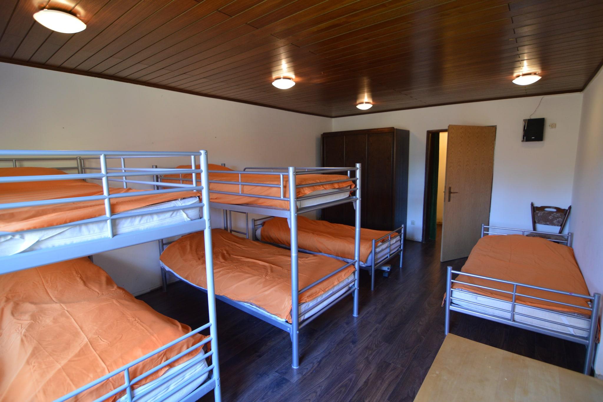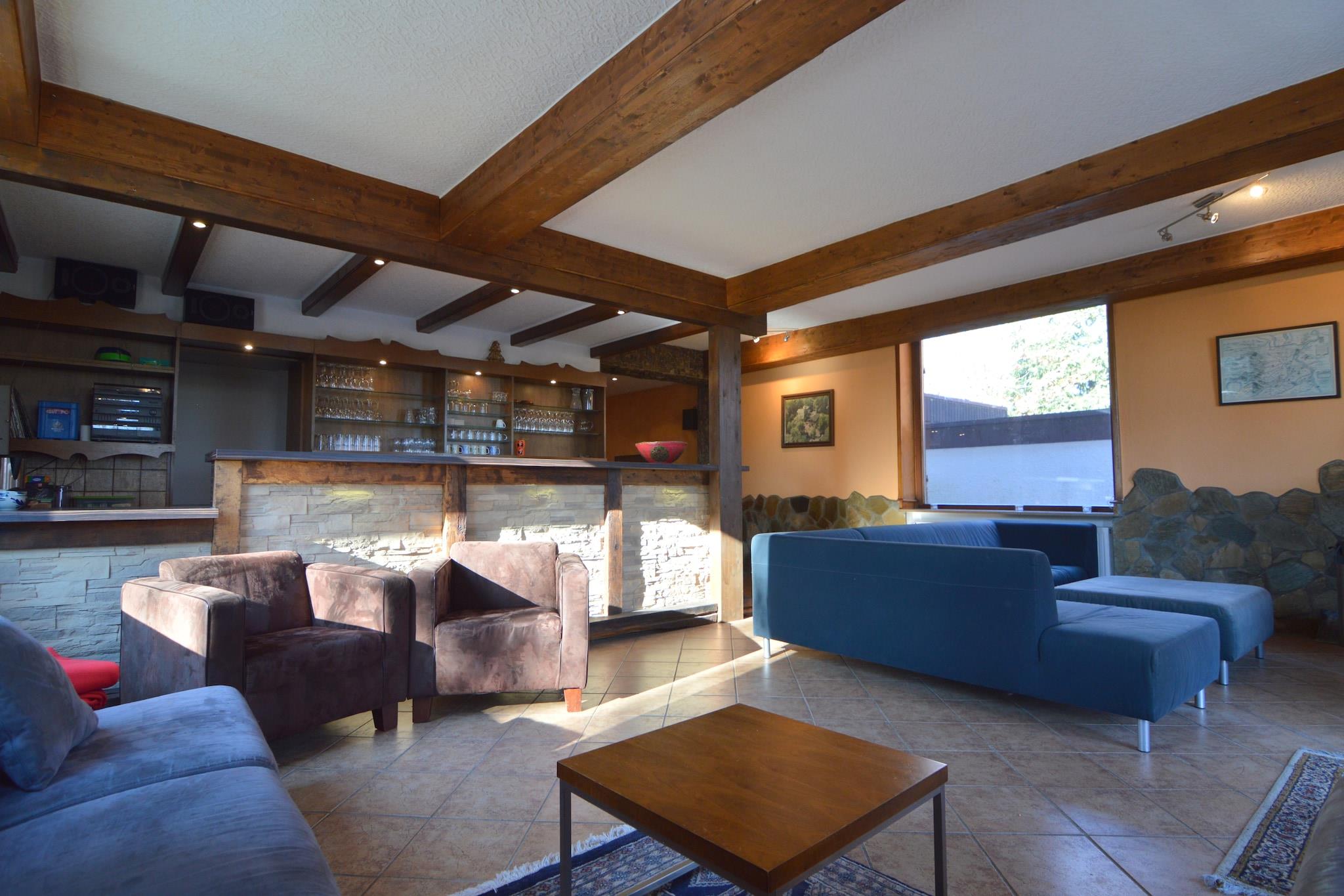 Beliggende i Kemmenau nær Bad Ems, er dette rummelige 5-værelses feriehus perfekt til grupper på op til 18 gæster, der søger komfort, natur og underholdning. Boligen har egen sauna, brændeovn og bar i stuen, hvilket skaber en hyggelig atmosfære til sammenkomster. Nyd solrige brunches på den private terrasse, fyr op for grillen, eller slap af i haven, mens børnene udforsker legeredskaberne. Indvendigt spænder layoutet over flere etager med et professionelt cateringkøkken, flere badeværelser og en blanding af dobbelt-, enkelt- og køjesenge, der passer til familier og venner. Pensionatet tilføjer ekstra plads og privatliv, mens en videoprojektor tilbyder filmaftener med stil. Parkering er tilgængelig, og op til 2 kæledyr er velkomne mod et tillægsgebyr. Beliggende i Rheinland-Pfalz/Saarland-regionen, er dette tilflugtssted tæt på Bad Ems kurby og kun 15 km fra Koblenz, hvilket gør det til en god base for at udforske Rhin- og Moseldalene.