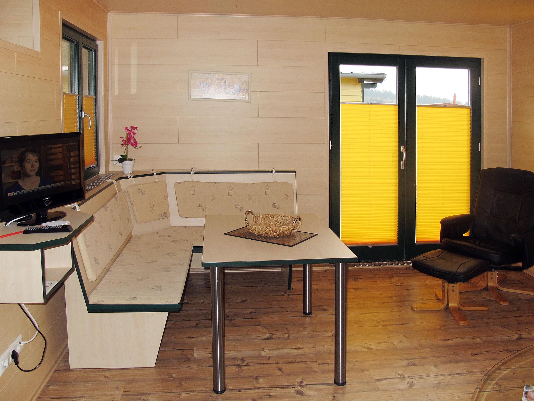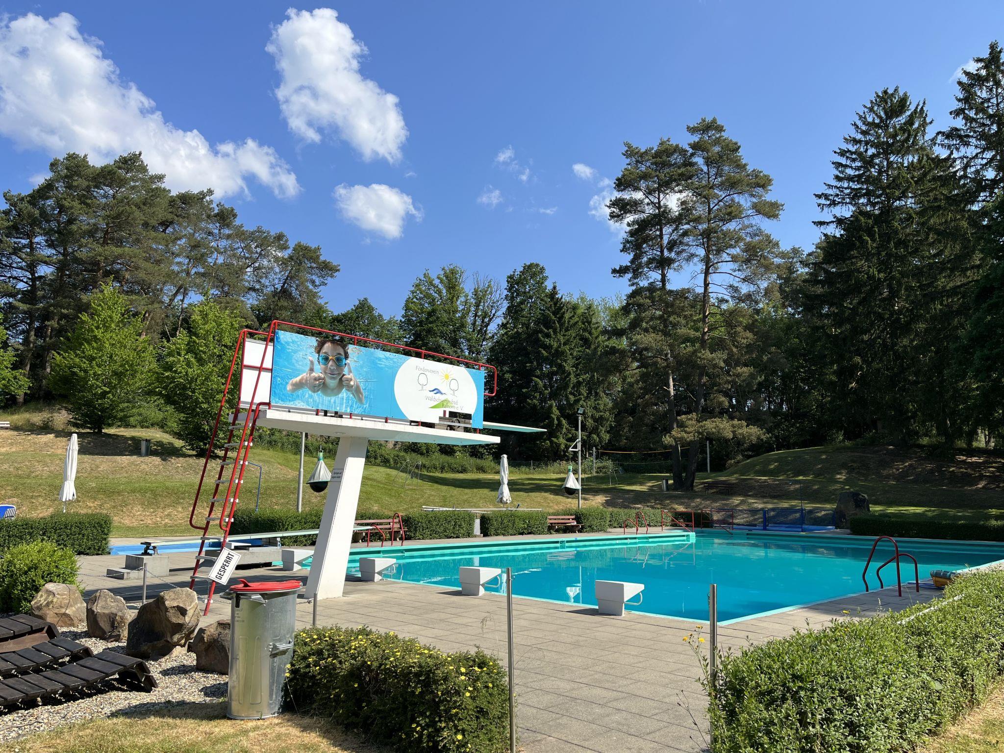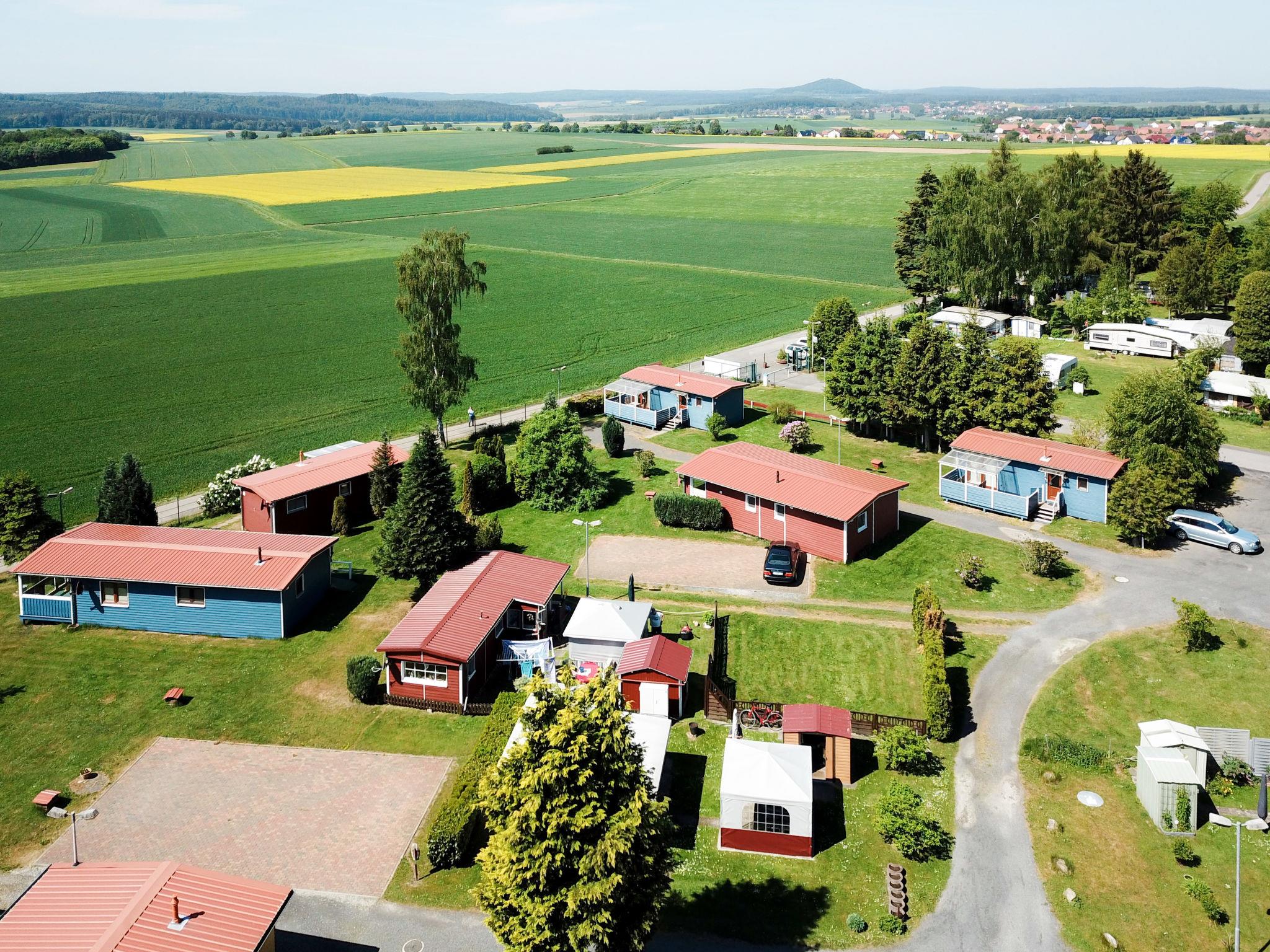 Bungalow "Erzeberg". 800 m from the centre of Balhorn, 5 km from the centre of Bad Emstal, 20 km from the centre of Kassel. For shared use: property 40'000 m2 (fenced), meadow, indoor pool (12 x 4 m, pool opening hours: 09:00-20:00, extra). Boccia. In the complex: reception, restaurant, sauna (extra). Washing machine, tumble dryer (for shared use, extra). Parking. E-charging station. Supermarket 1 km, bus stop "Balhorn Distelberg" 2 km, outdoor swimming pool 1 km. The bungalow-style holiday homes are located separately on the campsite. Fenced property (electric entrance gate).