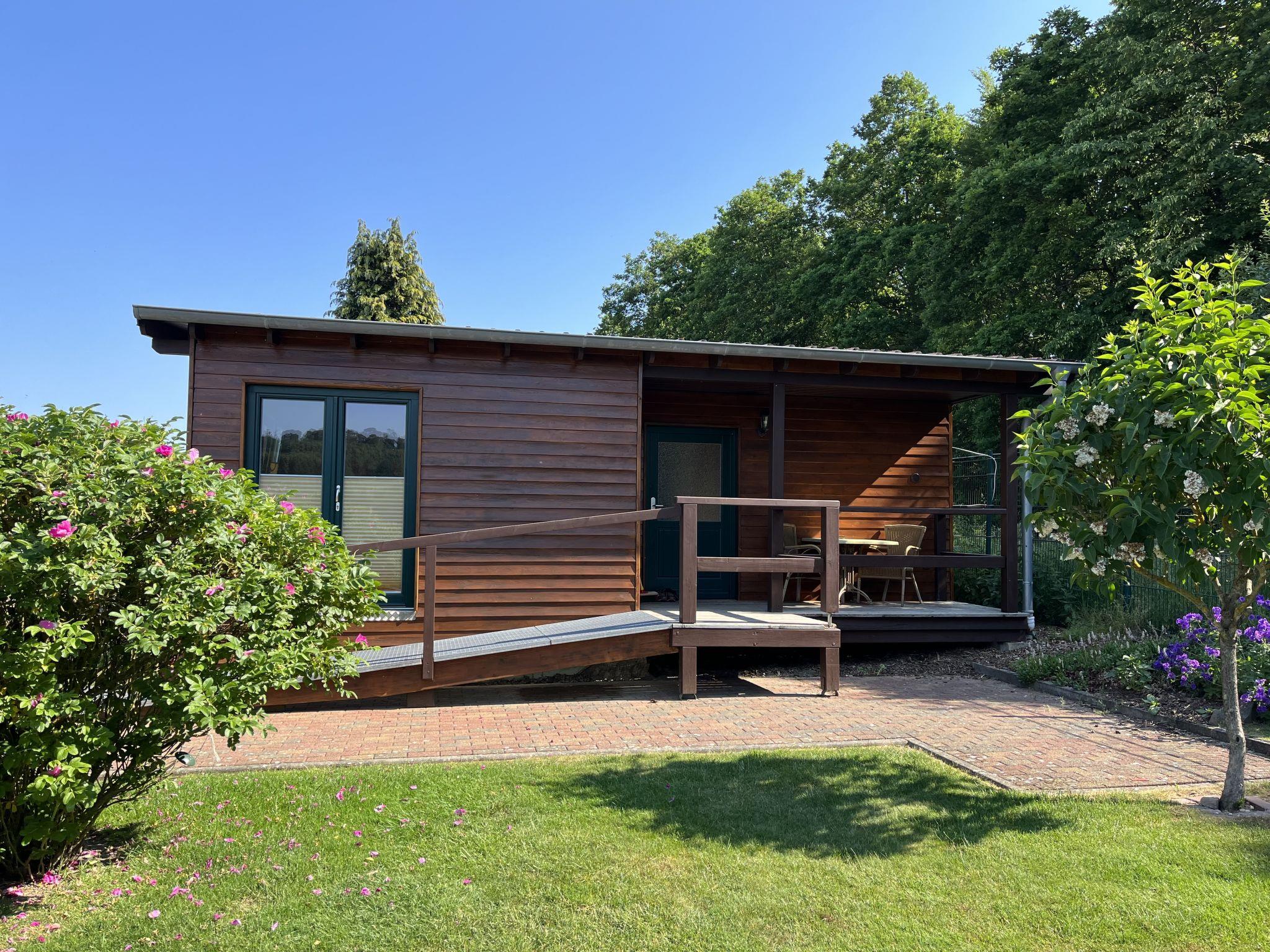 2-room bungalow 45 m2. Modern furnishings: living/sleeping room with 1 sofabed, dining table, dining nook, satellite TV, radio and DVD. Exit to the terrace. 1 room with 1 double bed. Open kitchen (4 gas rings, toaster, kettle, microwave, electric coffee machine). Shower/WC. Underfloor heating. Terrace. Terrace furniture. Facilities: children's high chair, baby cot. Internet (WiFi, free). Please note: non-smokers only. Maximum 1 pet/ dog allowed. Smoke alarm, fire extinguisher. The bungalow is barrier-free and wheelchair accessible.