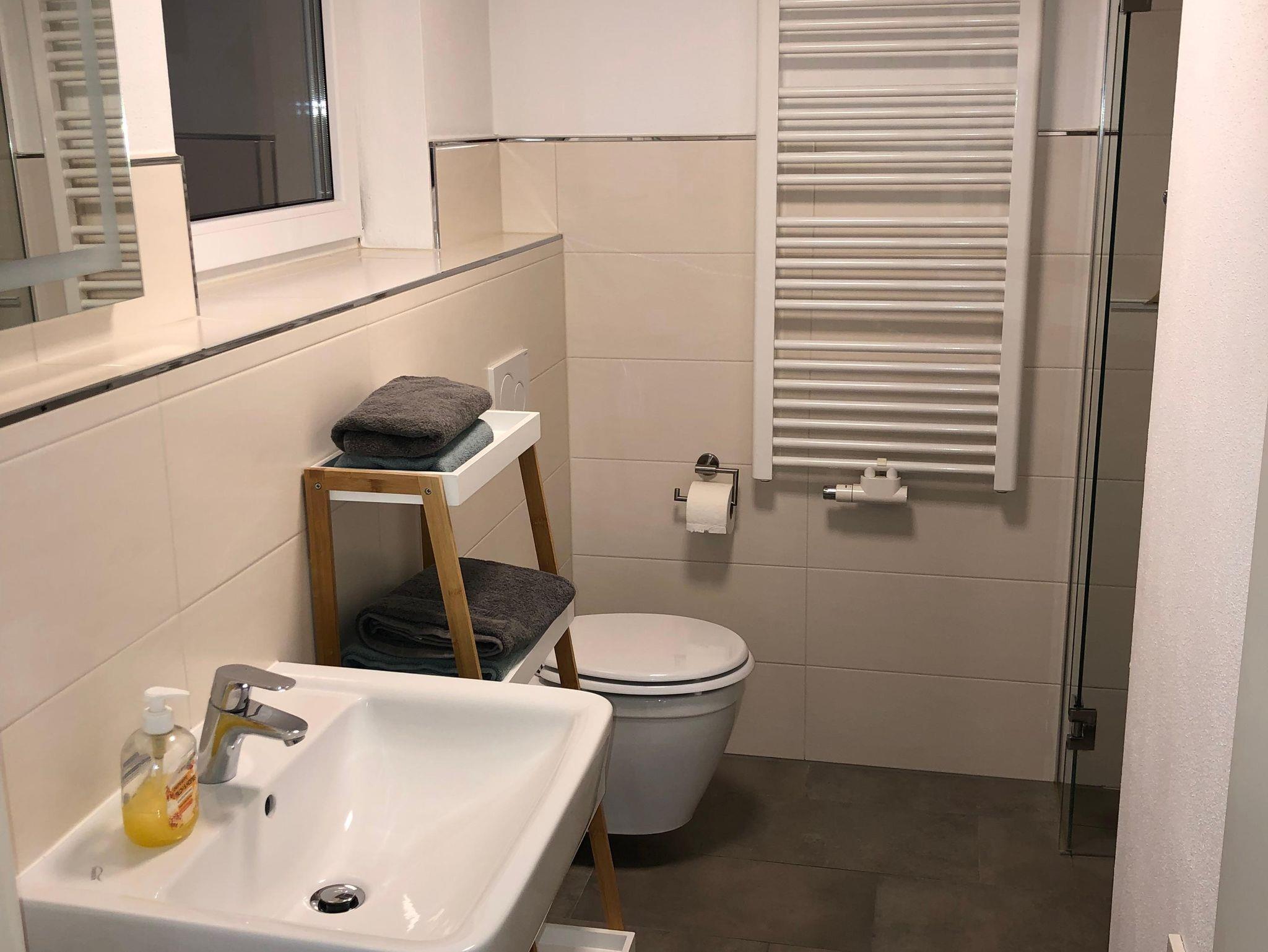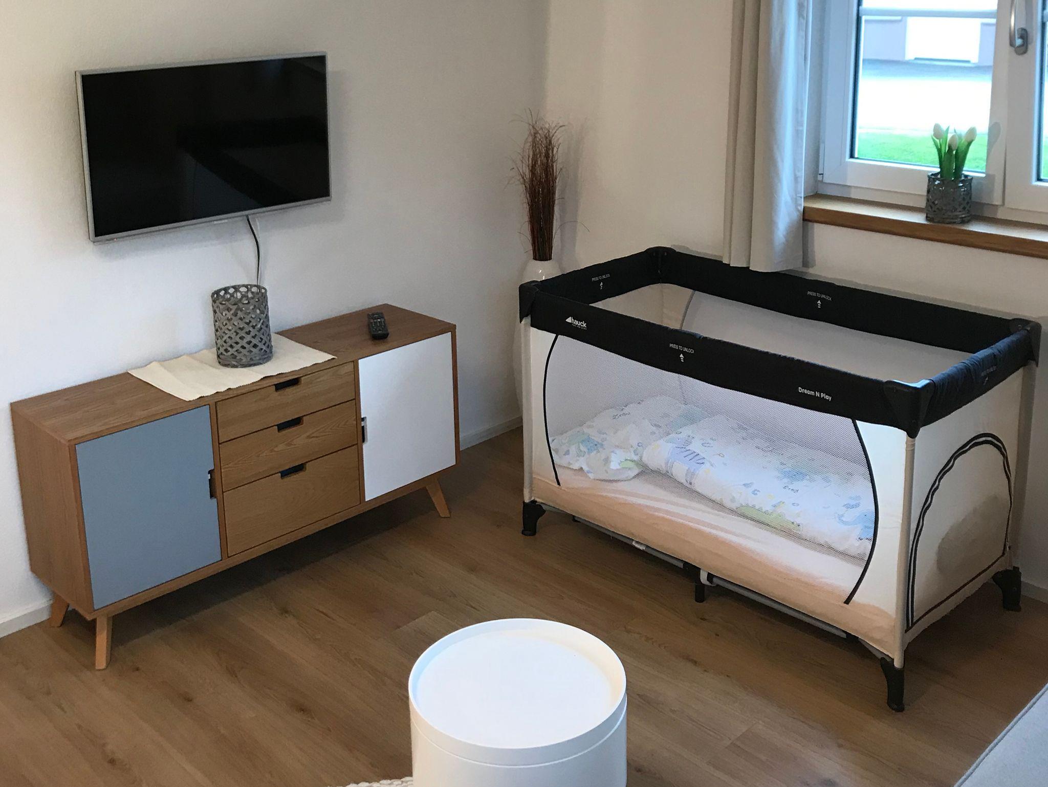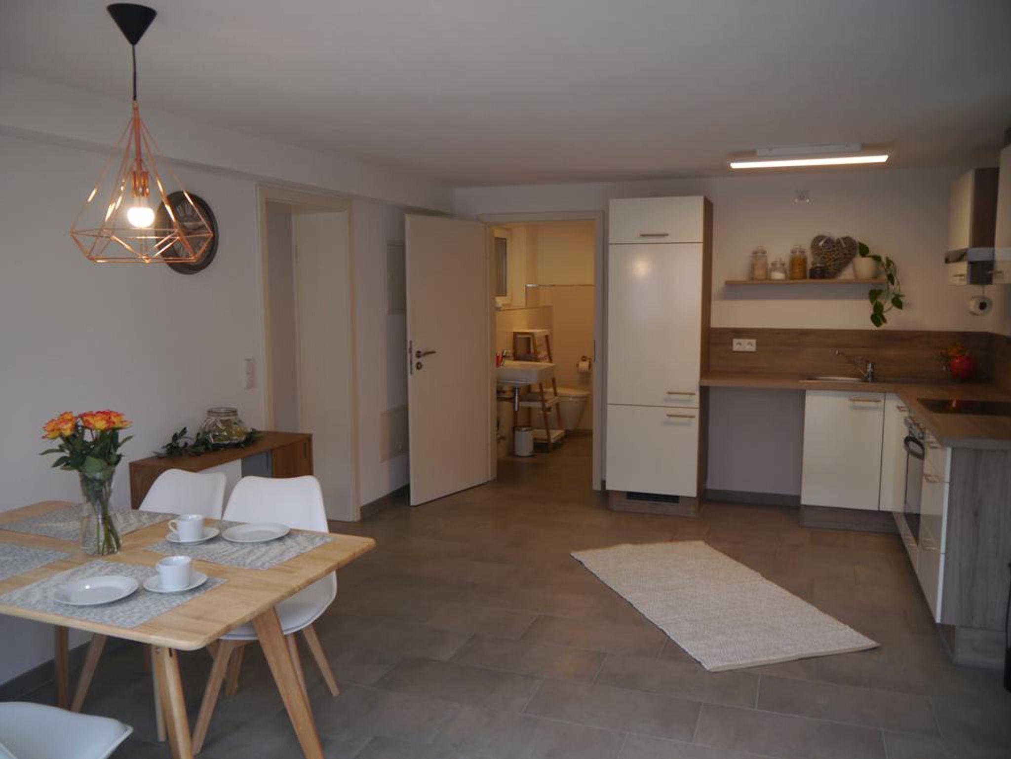 Die Ferienwohnung befindet sich in unserem Einfamilienhaus. Sie umfasst 40qm mit separatem Eingang und ist eine 1,5 Zimmer Ferienwohnung. Im ersten Raum befindet sich die Wohnküche mit Essecke. Angrenzend befindet sich das Wohn- Schlafzimmer mit Doppelbett und Schlafsofa. Zudem besitzt die Wohnung ein modernes Bad mit begehbarer Dusche und Fenster dieses ist aber ohne Tageslicht. Eine eigene Terrasse bietet Ihnen Verweilmöglichkeiten im Freien. Ein Parkplatz steht ihnen direkt am Objekt zur Verfügung.