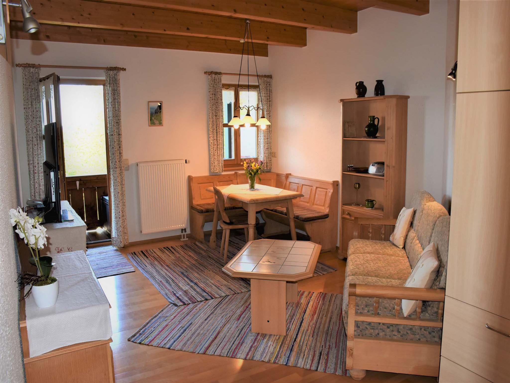 Geschmackvoll eingerichtete Ferienwohnung mit 42 qm im Landhausstil. In der Wohnung gibt es eine Wohnküche mit Essplatz und Sofa. Im Schlafzimmer vom Schreiner gibt es 1 Doppelbett und 1 Einzelbett. Zudem gibt es verstellbare Lattenroste, erhöhte Betten, Sommer- oder Daunenbetten. Die Böden in der Wohnung sind mit Parkett ausgestattet und im Bad gibt es einen Fließenboden mit Fußbodenheizung. Umgebauter Bauernhof mit ruhiger Lage. Kinderbett auf Anfrage möglich. Kosenloses WLAN und Parkplätze an der Unterkunft vorhanden.
