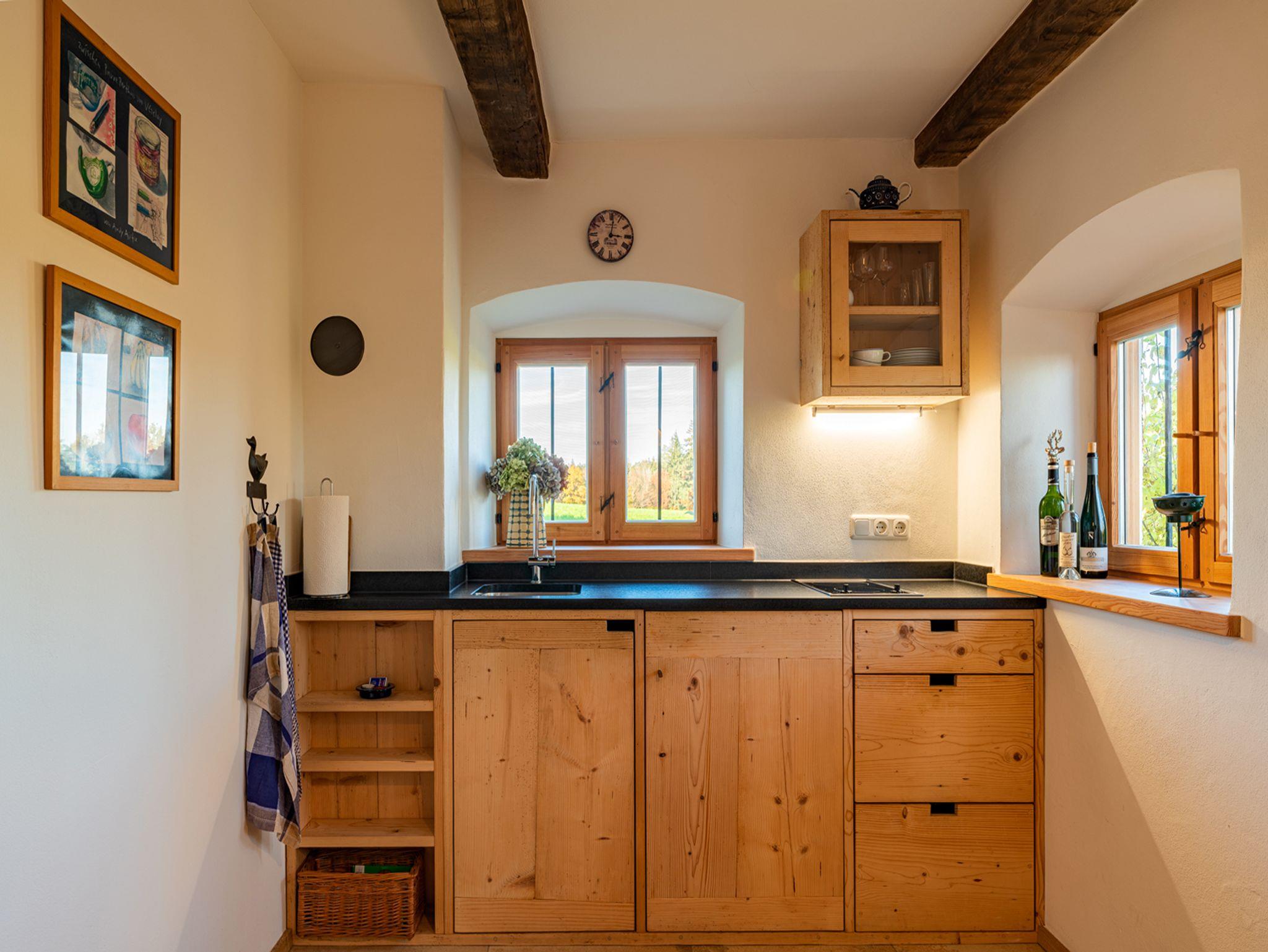 Im Erdgeschoß befindet sich die gut ausgestattete Küche mit einer hübschen Sitzecke und das neue Badezimmer. Über eine steile Innentreppe geht es nach oben in den Wohnbereich mit einer gemütlichen Couch, Fernseher und einem Lesesessel! Weiter geht's nochmal nach oben über eine Leiter auf die kuschelige Schlafempore. Durch die beiden großen Dachfenster haben Sie frei Sicht auf den Sternenhimmel! Vom Balkon und der eigenen Terrasse haben Sie einen sensationellen Blick auf die Chiemgauer Berge von der Kampenwand bis zum Hochfelln. Zum stillen Badeplatz am Schlosssee sind es nur zwei bis drei Minuten zu Fuß.
