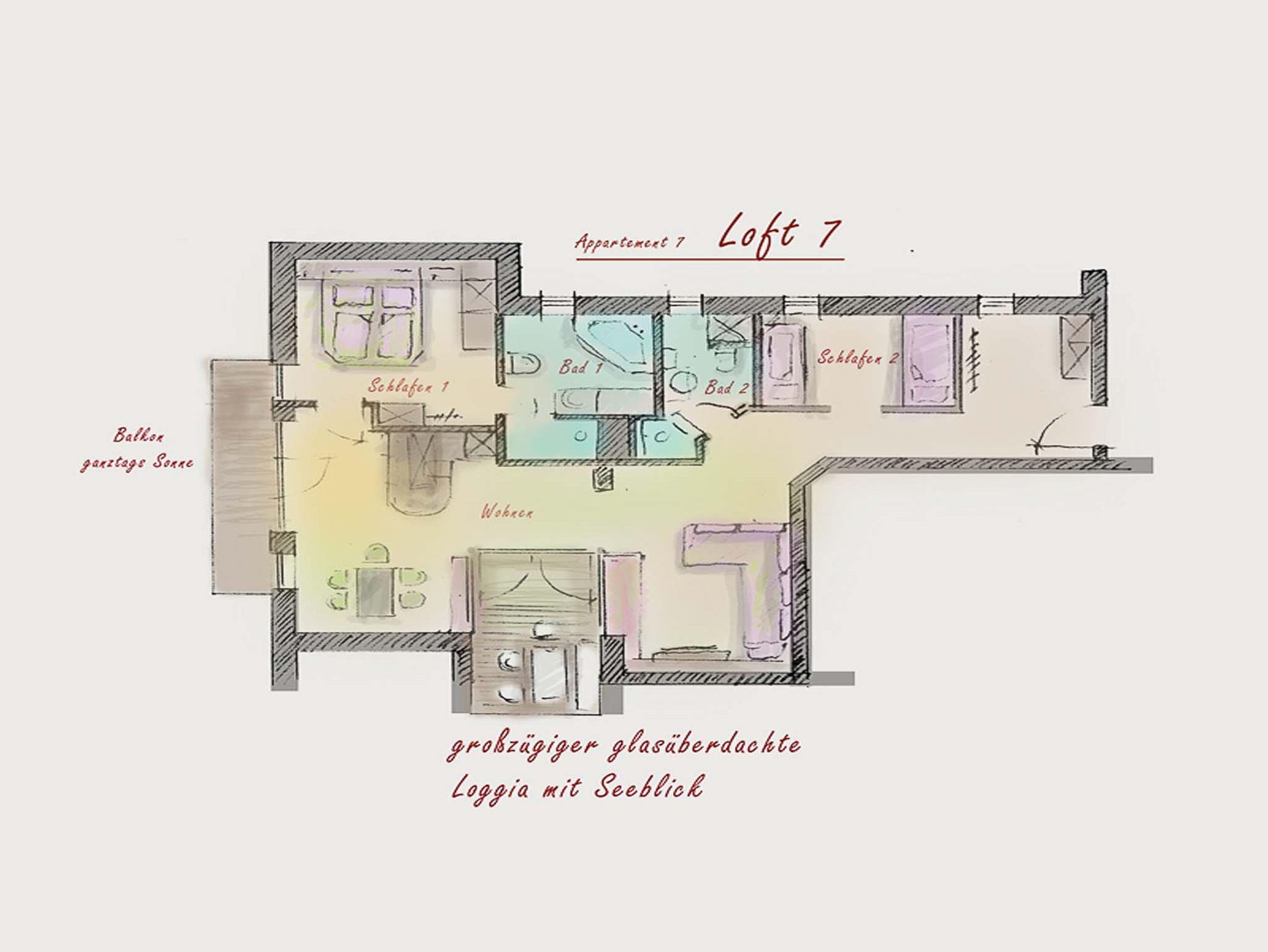 Lebensart am See, Loft 7, 83 qm Dachgeschoss, 2 separate Schlafzimmer, 2 Bäder
