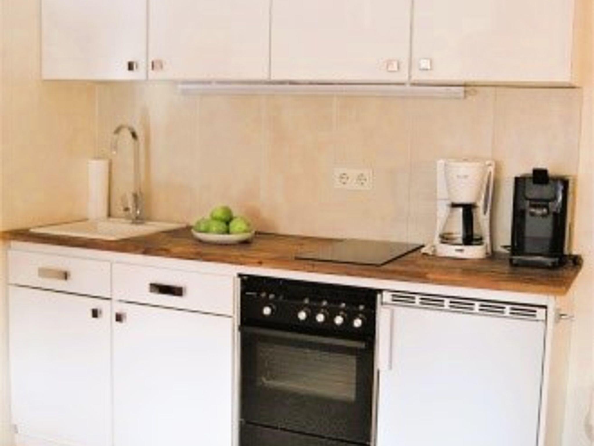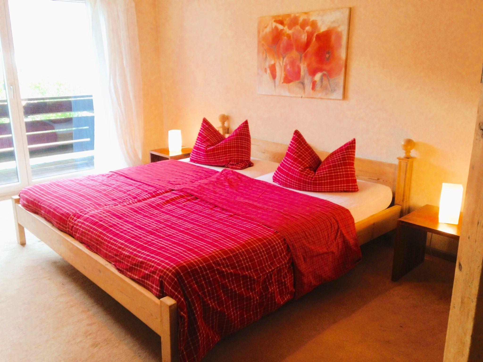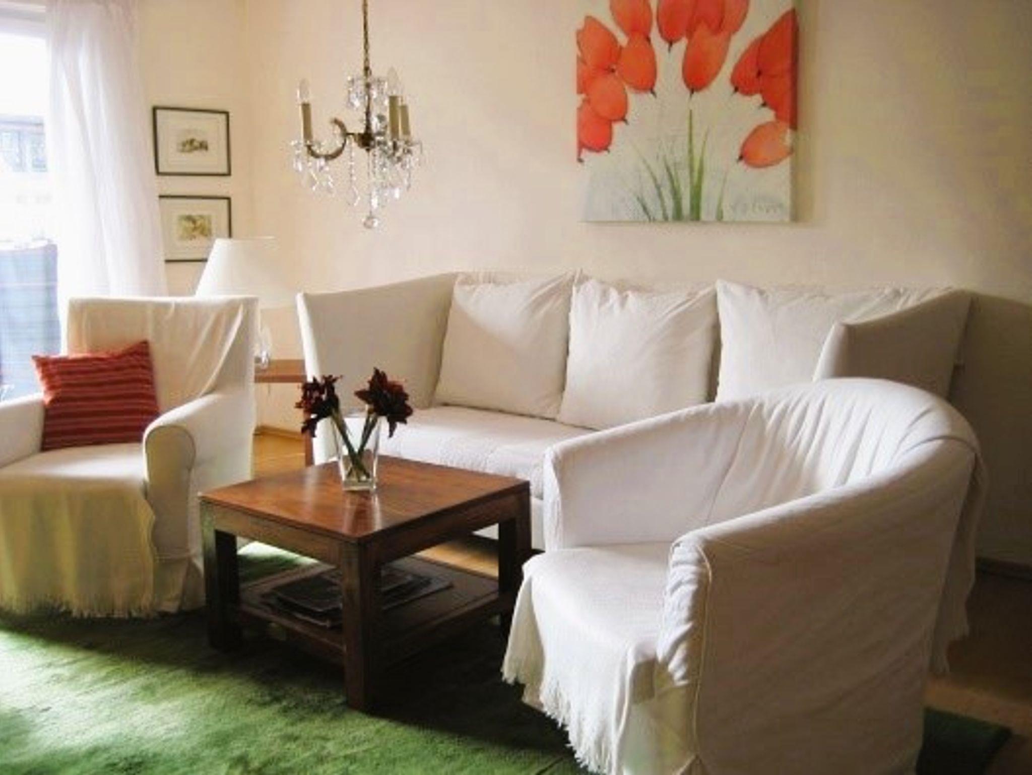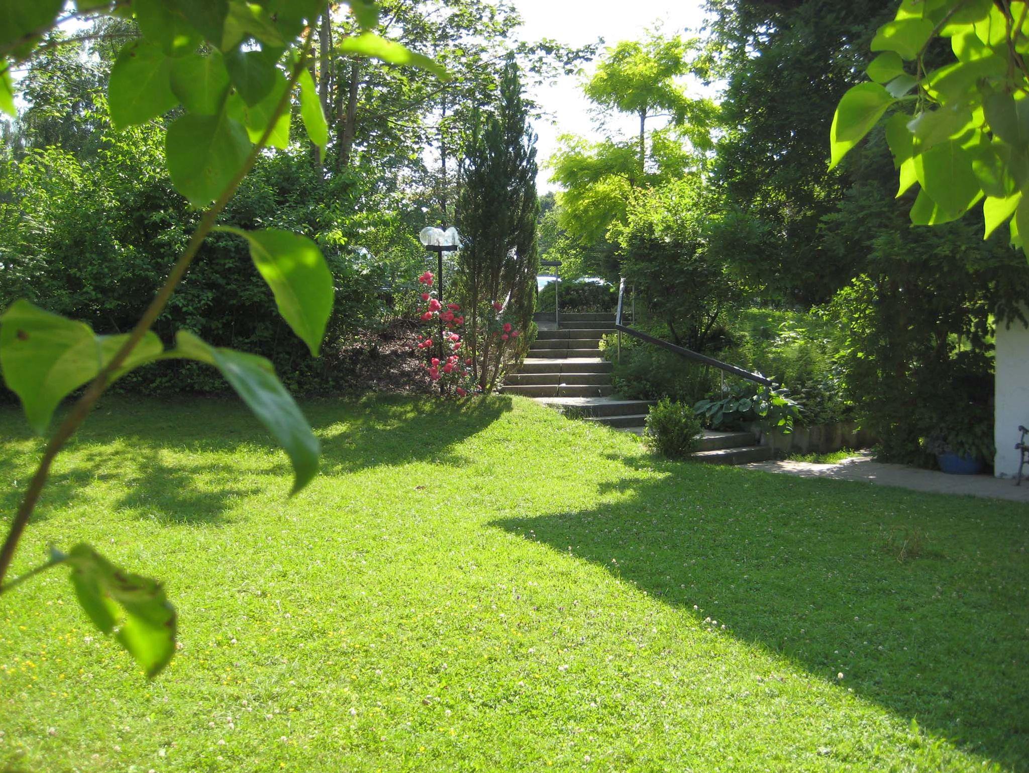 Gemütliche Nichtraucherferienwohnung mit großem Wohnzimmer. Komplett eingerichtete Einbaukücke, Backofen, Kühlschrank mit Eisfach, Bügelbrett und Bügeleisen, Handtücher und Bettwäsche. Das angegebene Schlafsofa im Wohnzimmer sind zwei einzelne Schrankbetten. Die Wohnung hat einen separaten Eingang und befindet sich in sonniger Südlage in einem ökologisch, naturnah angelegten, parkähnlichem Garten (3000 qm), mit Blumen rund ums Haus, der Sie an schönen Sommertagen zum Sonnen, oder Relaxen einlädt (Sonnenliegen vorhanden). Für laue Sommerabende steht Ihnen eine Grill zur Verfügung. Halten Sie Siesta auf dem großen und großzügig überdachten, freisitzähnlichen Balkon (möbliert), der von beiden Zimmern der Ferienwohnung zugänglich ist.