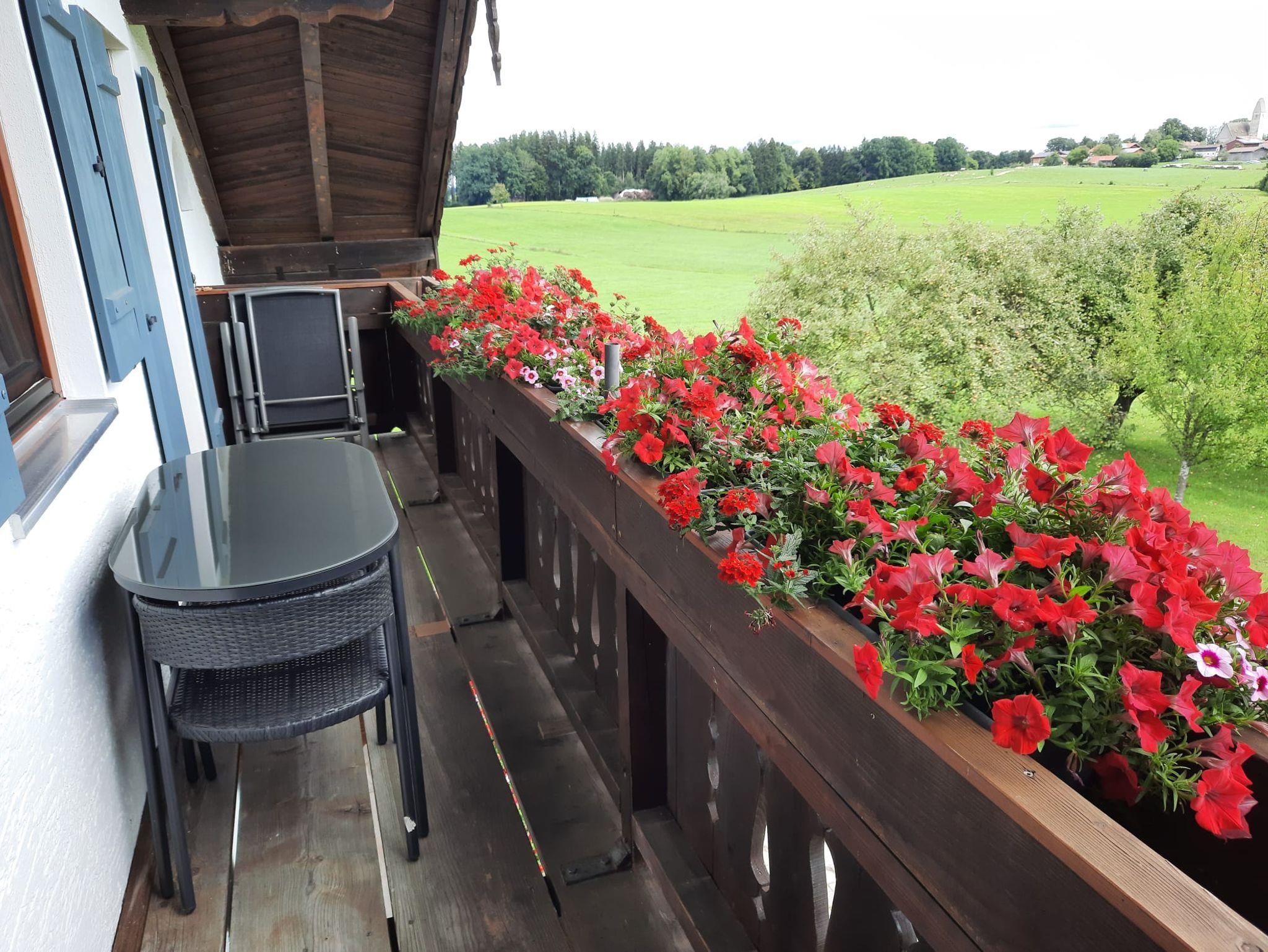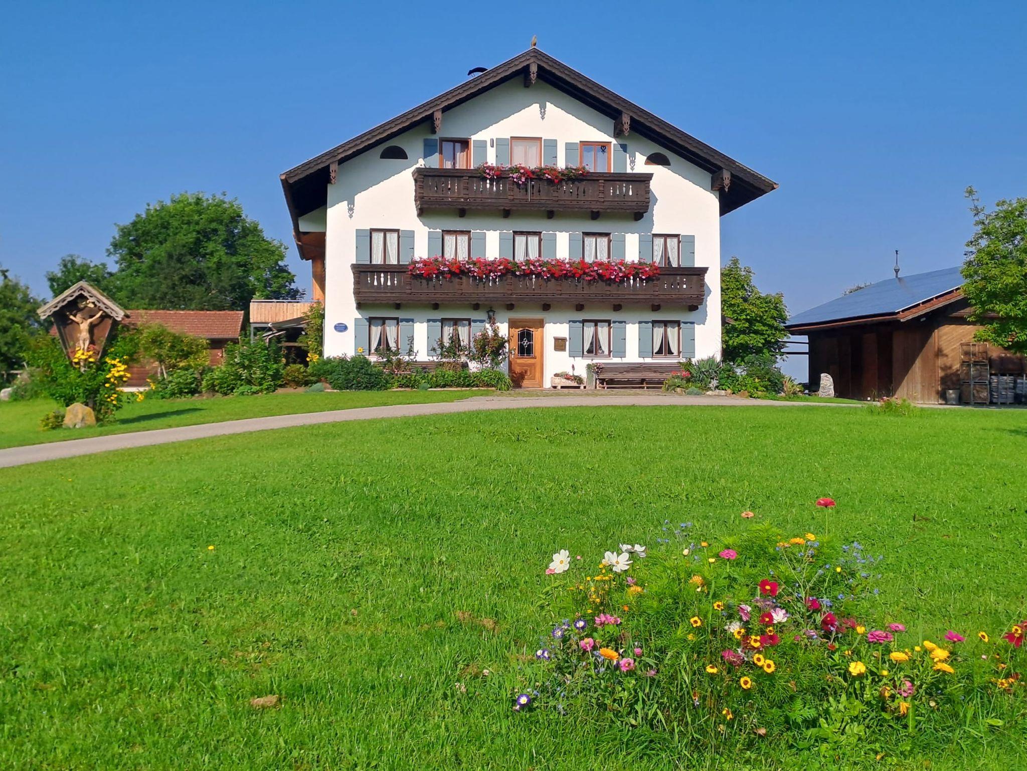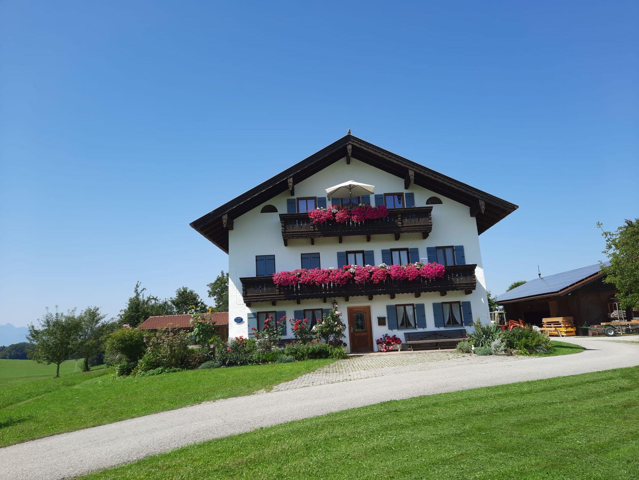 Die Ferienwohnung mit 45 qm befindet sich im 2. Stock auf einem Einzelhof mit herrlicher Alleinlage in der Nähe des Simssees. Vom Ostbalkon aus ist der Blick auf die Chiemgauer Berge besonders schön. Die Wohnung verfügt über eine voll eingerichtete Küche mit Kaffeemaschine, Toaster, Wasserkocher, Spülmaschine und Mikrowelle. Im separaten Schlafzimmer ist ein Safe vorhanden. Das Badezimmer verfügt über eine begehbare Dusche, einen Haartrockner und einen Handtuchheizkörper. Im Preis sind Handtücher und Toilettenpapier (ERSTAUSSTATTUNG) Bettwäsche und WLAN inkludiert. Für das Auto und die Fahrräder sind Stellplätze vorhanden.