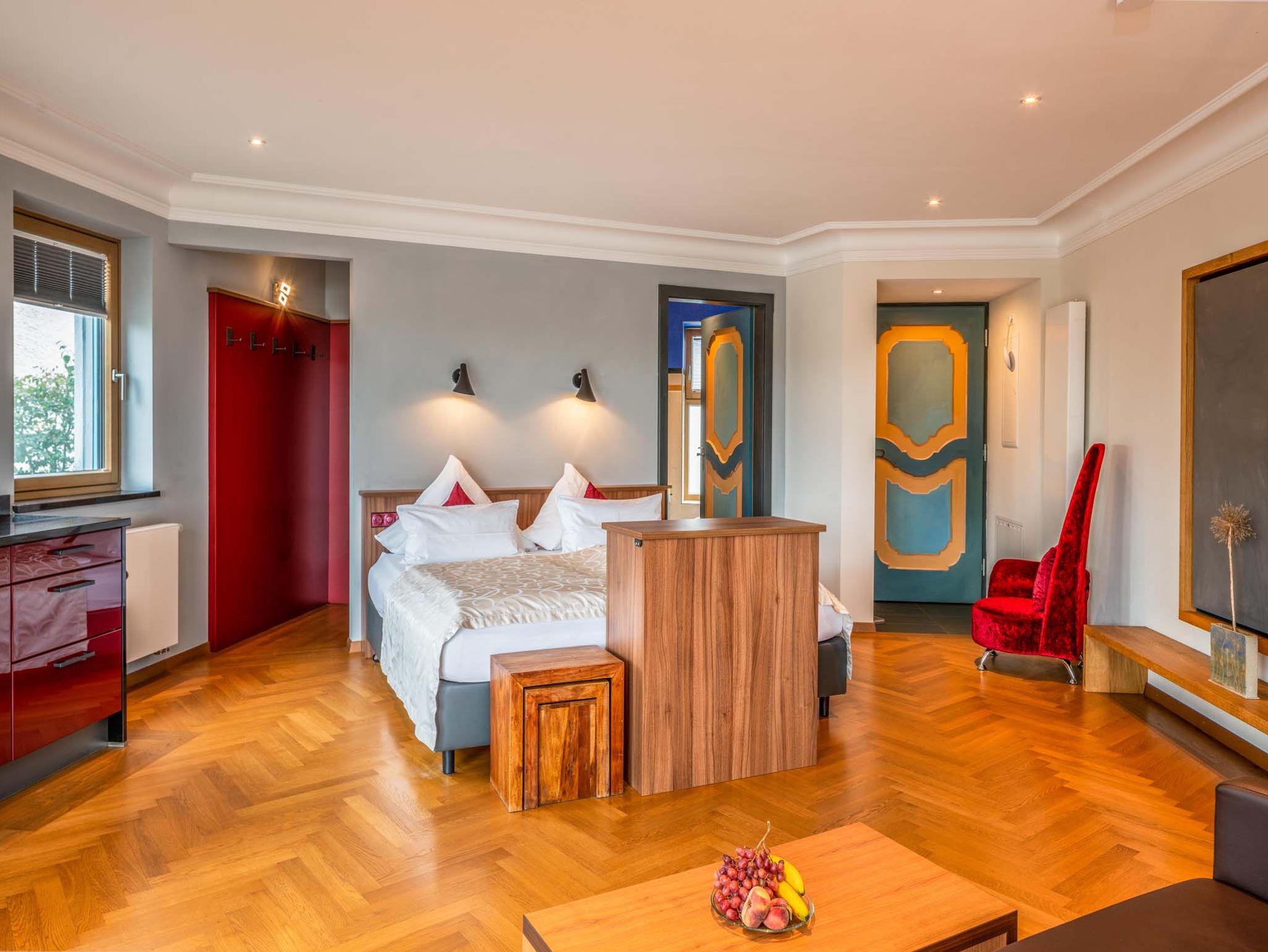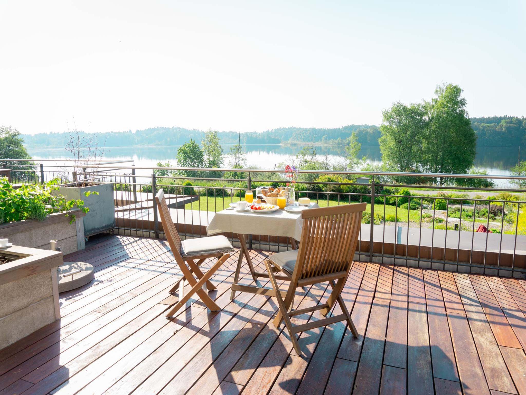 Urlaub mit Stil und Eleganz: Das 1-Zimmer-Appartement See-Lodge ist ein sehr elegant und verfügt über eine Holzterrasse. Von der Terrasse aus können Sie die Sonnenstunden morgens und abends, den zauberhaften Ausblick über den Pelhamer See und die Chiemgauer Alpen in vollen Zügen genießen. Der Wohn- und Schlafbereich wird ergänzt durch ein separates, äußerst geschmackvoll gestaltetes Bad mit Flair nach König Ludwig II. Ein mit viel Liebe zum Detail gestaltetes Urlaubsdomizil - ein Feuerwerk der Kreativität!