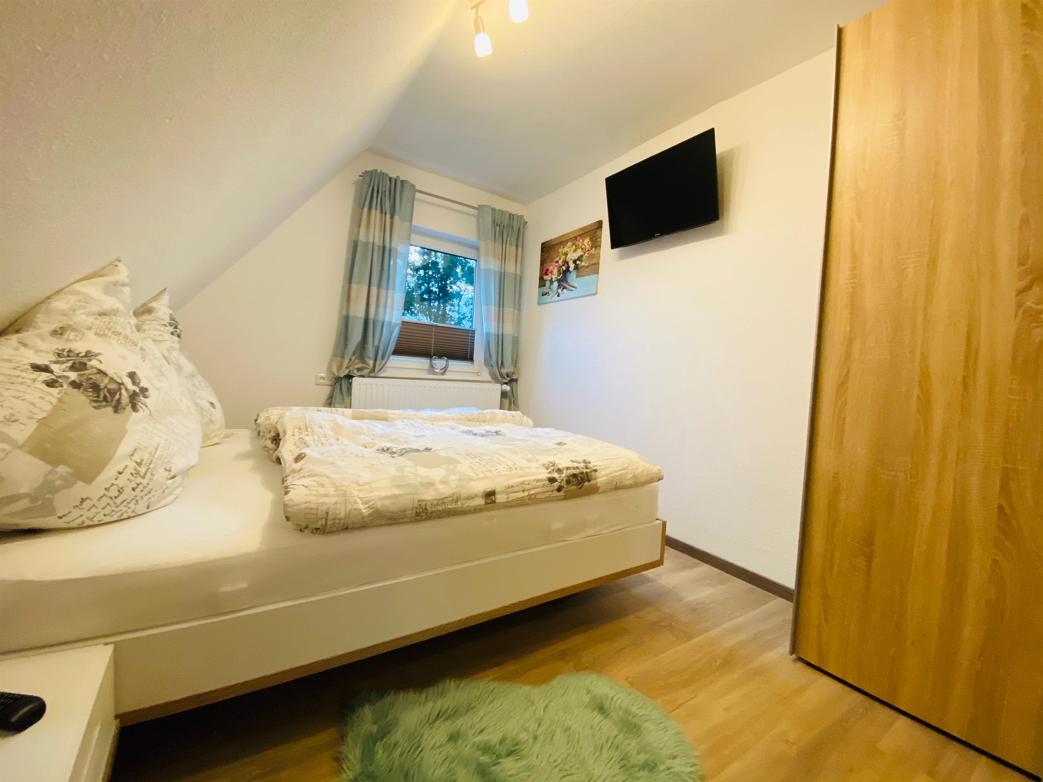 Das modern eingerichtete Wohnzimmer bietet neben einem großen Fernseher und direkter Anbindung zum Esszimmer ein schönes großes Sofa, auf dem Sie nach einem herrlichen Tag in der Lüneburger Heide entspannen können.