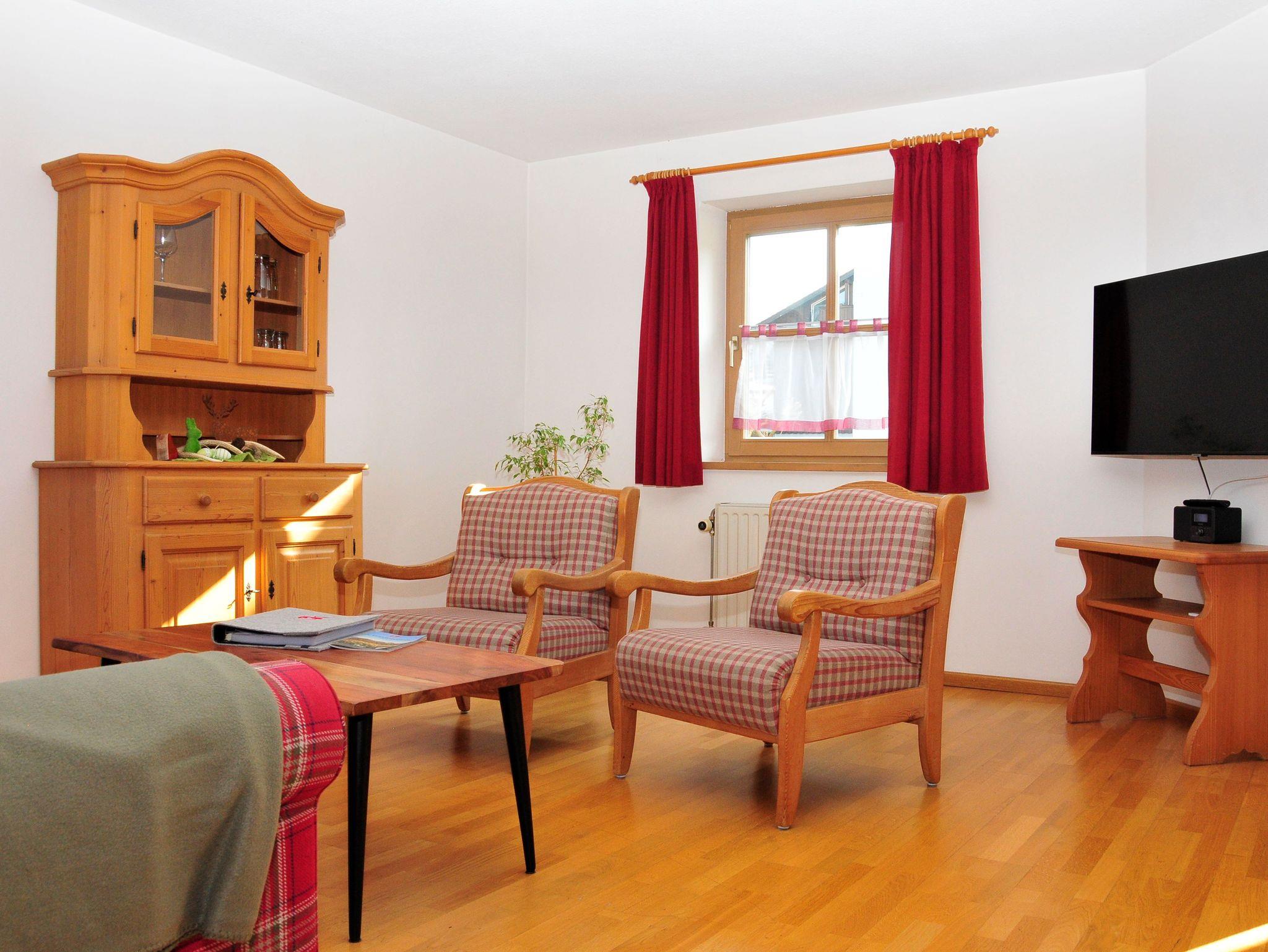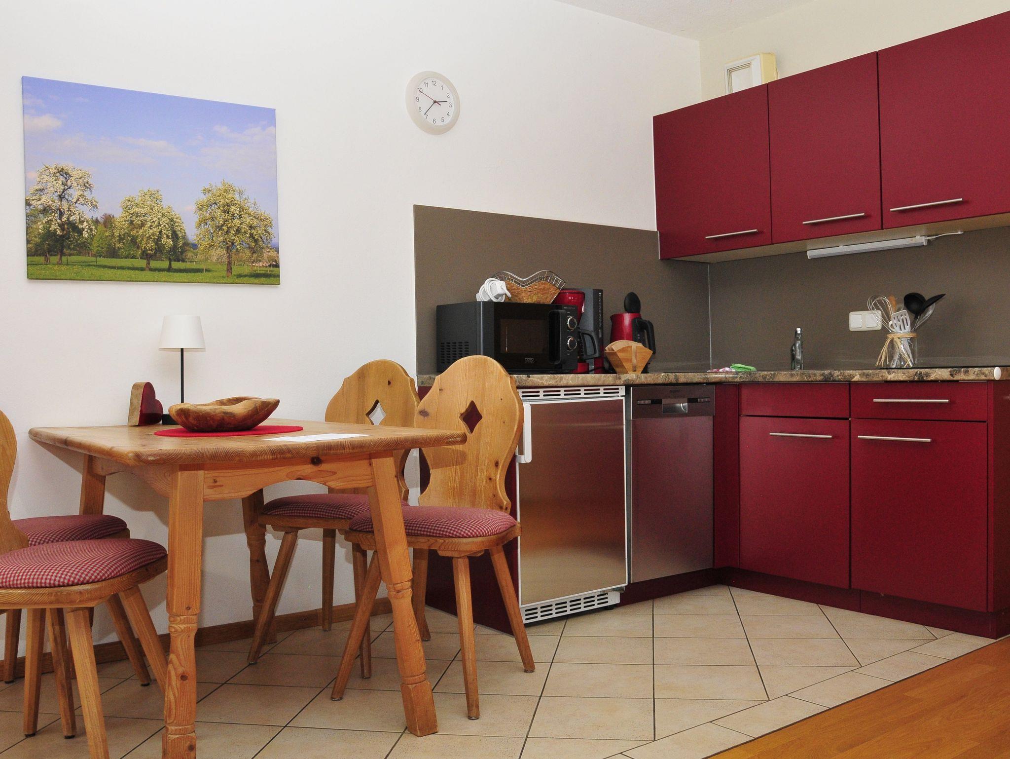 2-4 Personen, 47 m² Parterre, nach Süden gelegen. Großer Wohnraum mit Couchgarnitur, Fernseher, Radio mit Bluetooth, W-LAN kostenlos, integrierte Küche mit Essplatz, Mikrowelle, Kaffeemaschine, Wasserkocher, Toaster, Geschirr für 4 Personen, Doppelschlafzimmer, Bettcouch im Wohnzimmer für 2 Personen geeignet, Dusche mit WC, Föhn, Flur und Südterrasse mit Tisch und 2 Stühlen, Liegestuhl auf Anfrage, Hunde sind auf Anfrage willkommen, andere Haustiere sind leider nicht erlaubt.