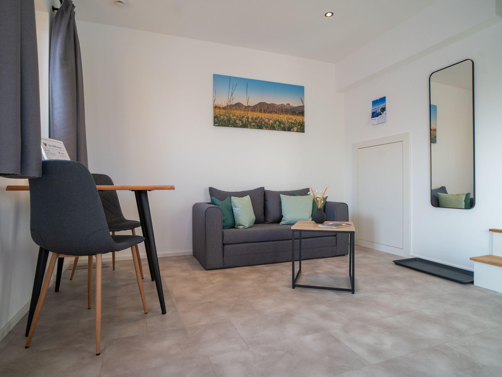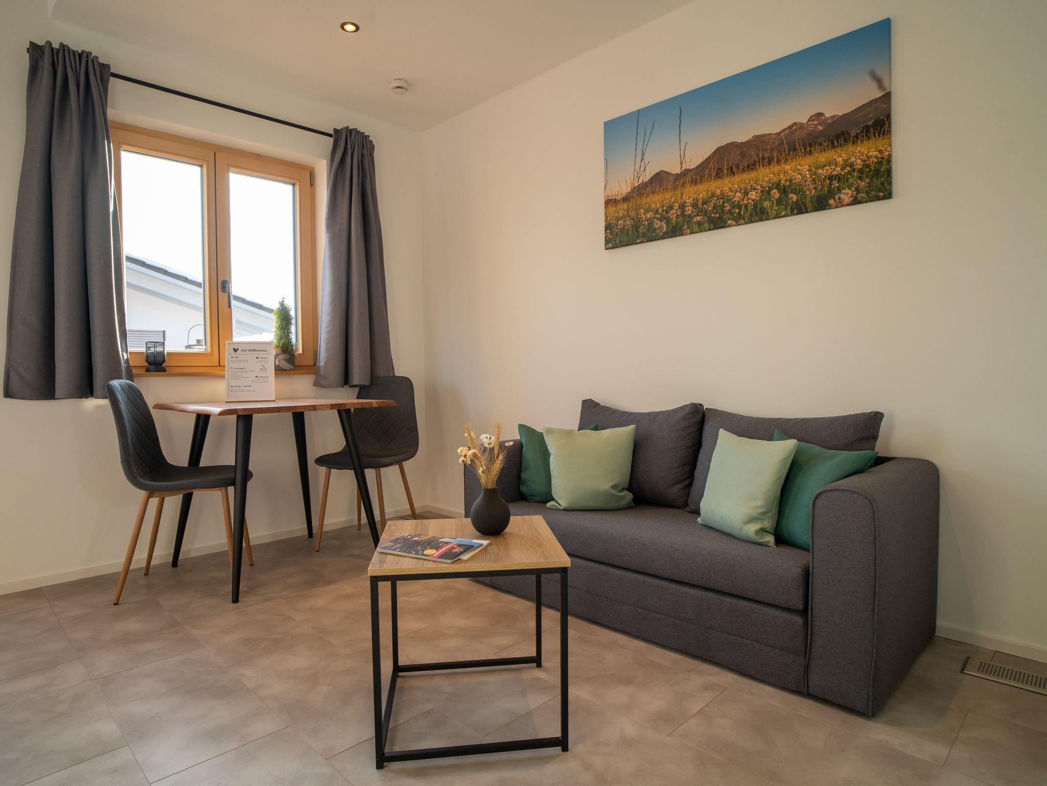 Mit 33 Quadratmetern bietet die Wohnung ein luftiges und komfortables Ambiente, in dem Sie sich sofort wie zu Hause fühlen werden. Entspannen Sie auf dem großen Balkon, der mit einem schönen Bergblick aufwartet, oder machen Sie es sich im gemütlich eingerichteten Wohn-Essbereich bequem.