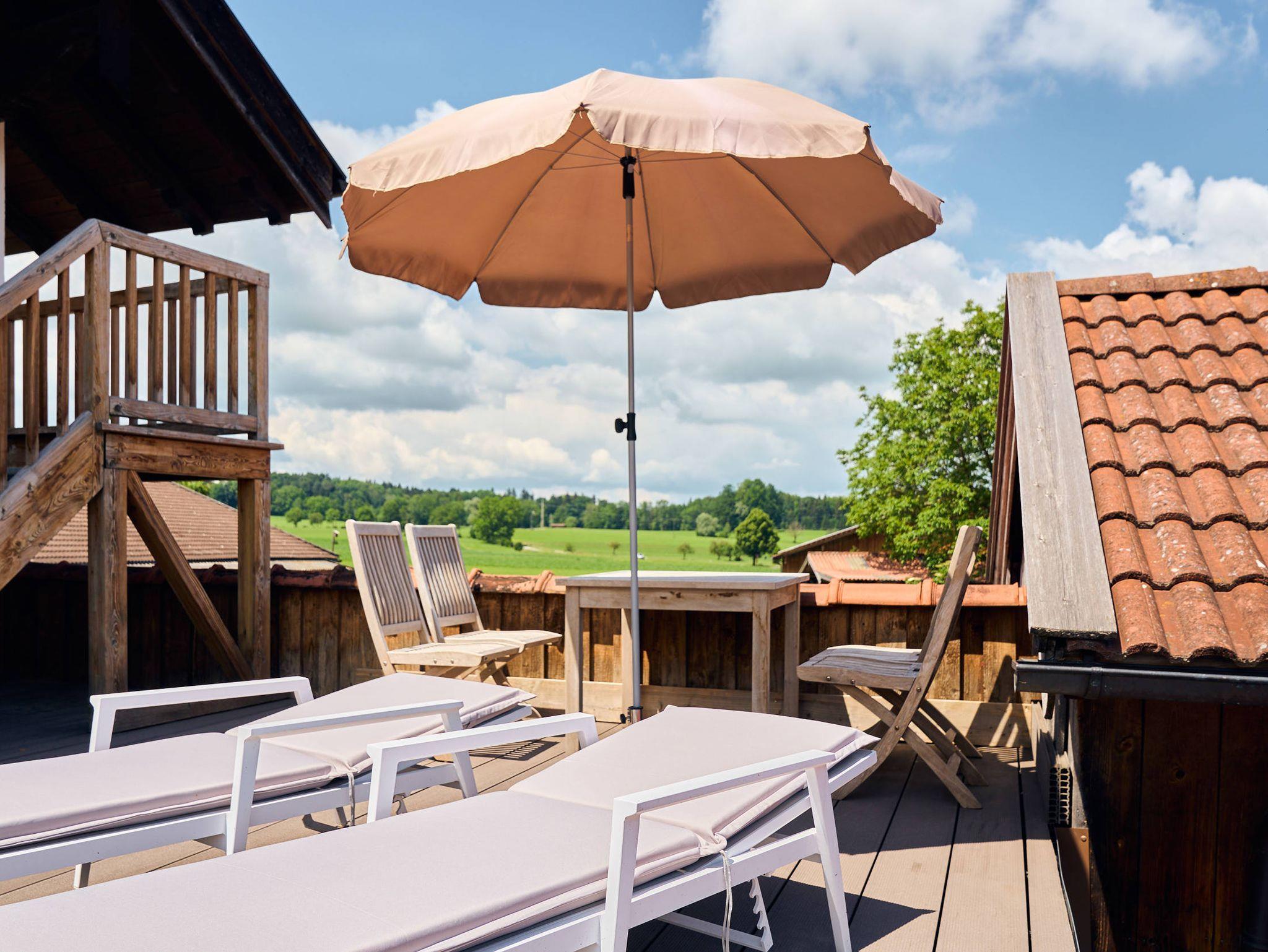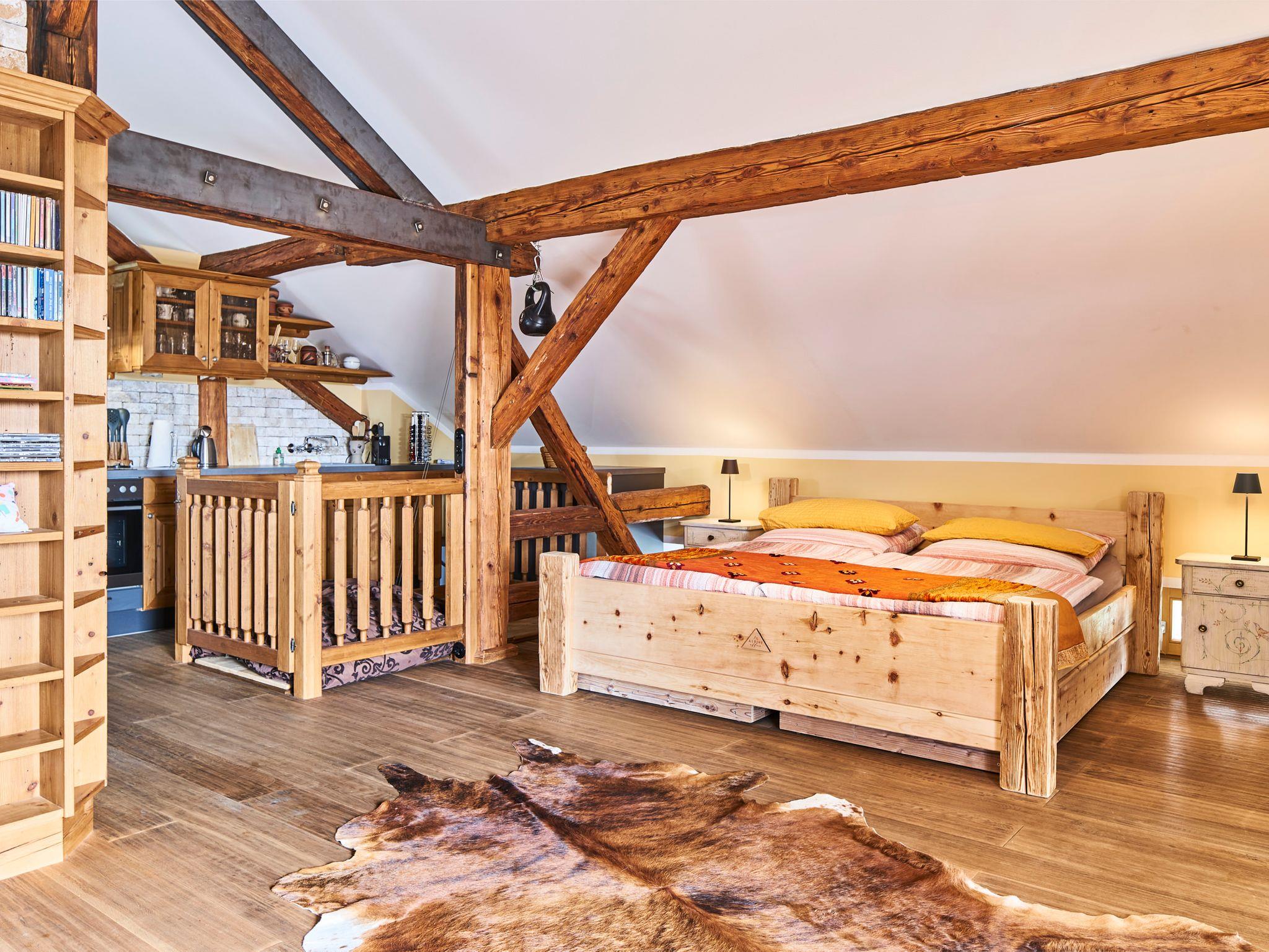 Geräumiges, 90 m² großes, neu eingerichtetes Ferienappartement im Dachgeschoss mit eigenem Zugang. Blick auf das Dorf und die Berge. Die Wohnfläche ist loftartig angelegt. Das stilvoll mit viel Holz eingerichtete Appartement verfügt über einen Schlafbereich (Doppelbett), eine voll ausgestattete Küchenzeile, Ess- und Wohnbereiche sowie ein Badezimmer mit Wanne, Dusche und WC. Ostseitiger Balkon. Terrasse mit Sonnenliegen und Tisch. Carport mit Ladestation für E-Auto und E-Bikes. Das Appartement ist bestens geeignet für 2-4 Personen (2 Erwachsene und 2 Kinder) Es gibt keine getrennten Schlafzimmer! Die Ferienwohnung bietet Platz für ein eigenes Reisebabybett. Hunde auf Anfrage für 25 Euro pro Tag. Zusätzlich fällt bei Buchung eine Endreinigungsgebühr von 60 Euro an. Zahlung bar oder per Überweisung/Paypal.