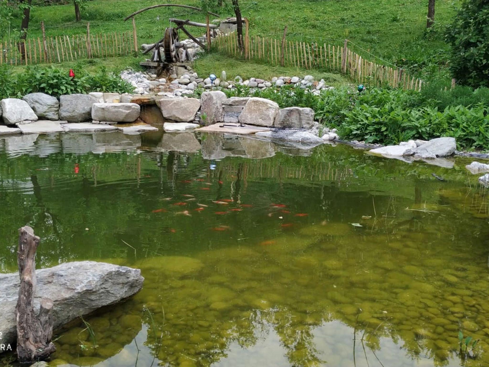 In unserem großzügigen Garten mit Fischteich und Liegewiese haben Sie die Möglichkeit abzuschalten oder einen Grillabend in unserer Grillhütte zu verbringen.