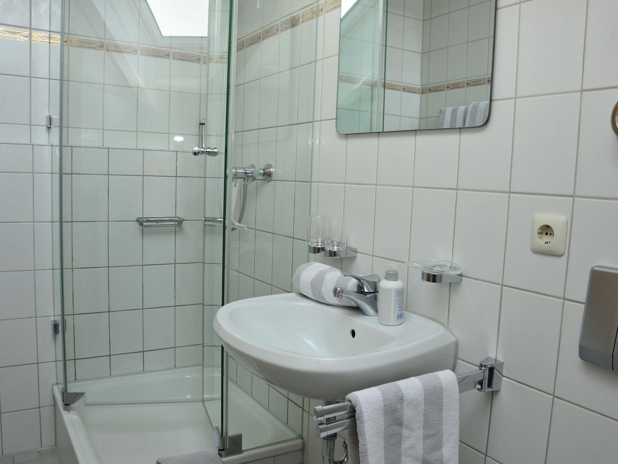 Ferienwohnung für 2 bis 4 Personen. 41 m². 2. Stock, Studio, nach Süden gelegen. Wohnraum mit Couchgarnitur, Fernseher, Radio mit Bluetooth, W-LAN kostenlos, Küche mit Essplatz, Mikrowelle, Kaffeemaschine, Wasserkocher, Toaster, Geschirr für 4 Personen, Doppelschlafzimmer, Bettcouch im Wohnzimmer für 2 Personen geeignet, Dusche mit WC, Föhn, Flur, Großer Südbalkon mit Tisch und 2 Stühlen.