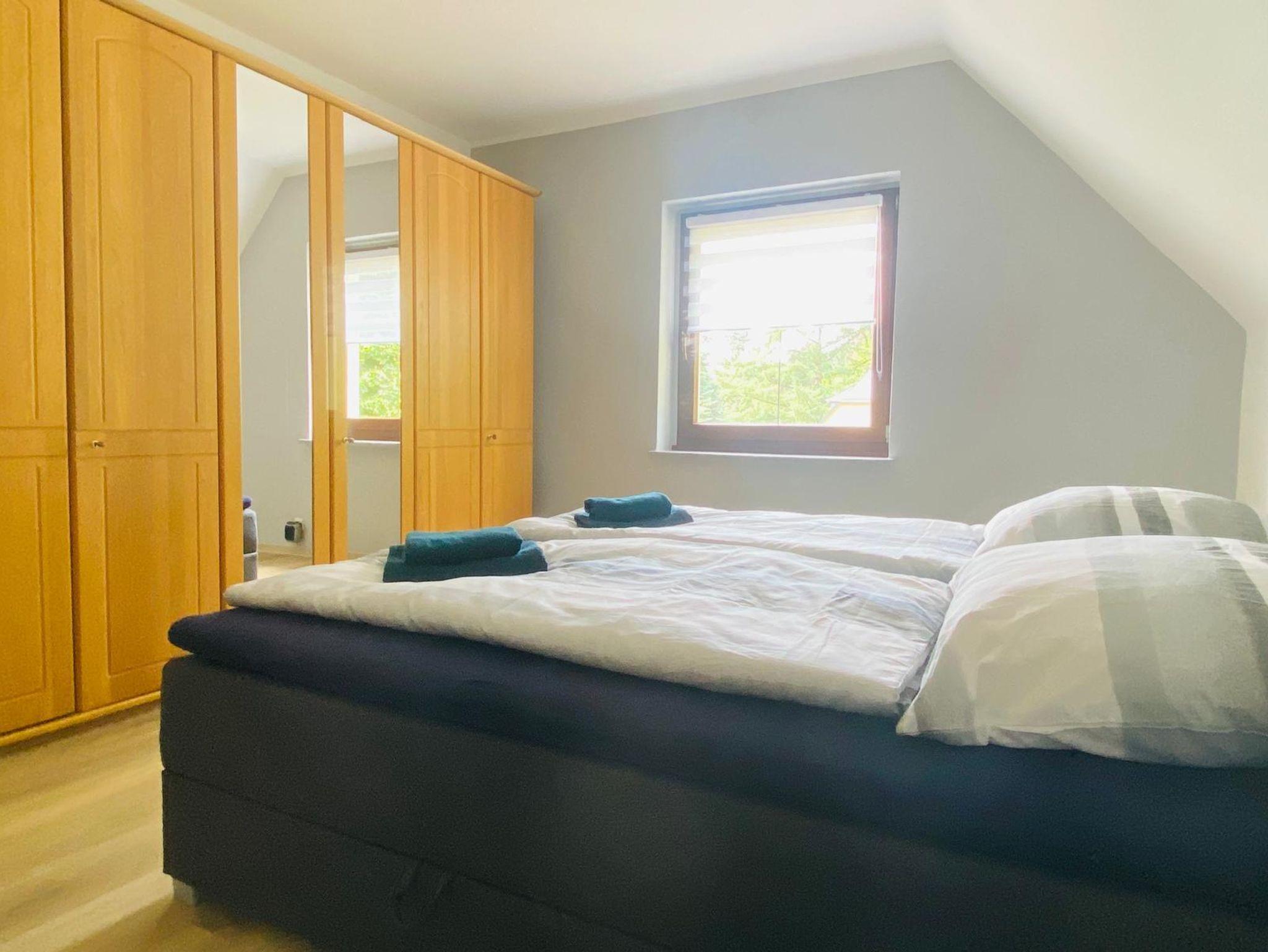 Unser Ferienhaus erstreckt sich über 2 Etagen und verfügt über 4 separate Schlafräume und einem WC ,welche im Obergeschoss liegen. Zwei Schlafräume sind jeweils mit einem Doppelbett ausgestattet, ein Schlafraum mit zwei 1,40 Meter-Betten, ein Schlafraum mit einem 1,40 Meter-Bett.