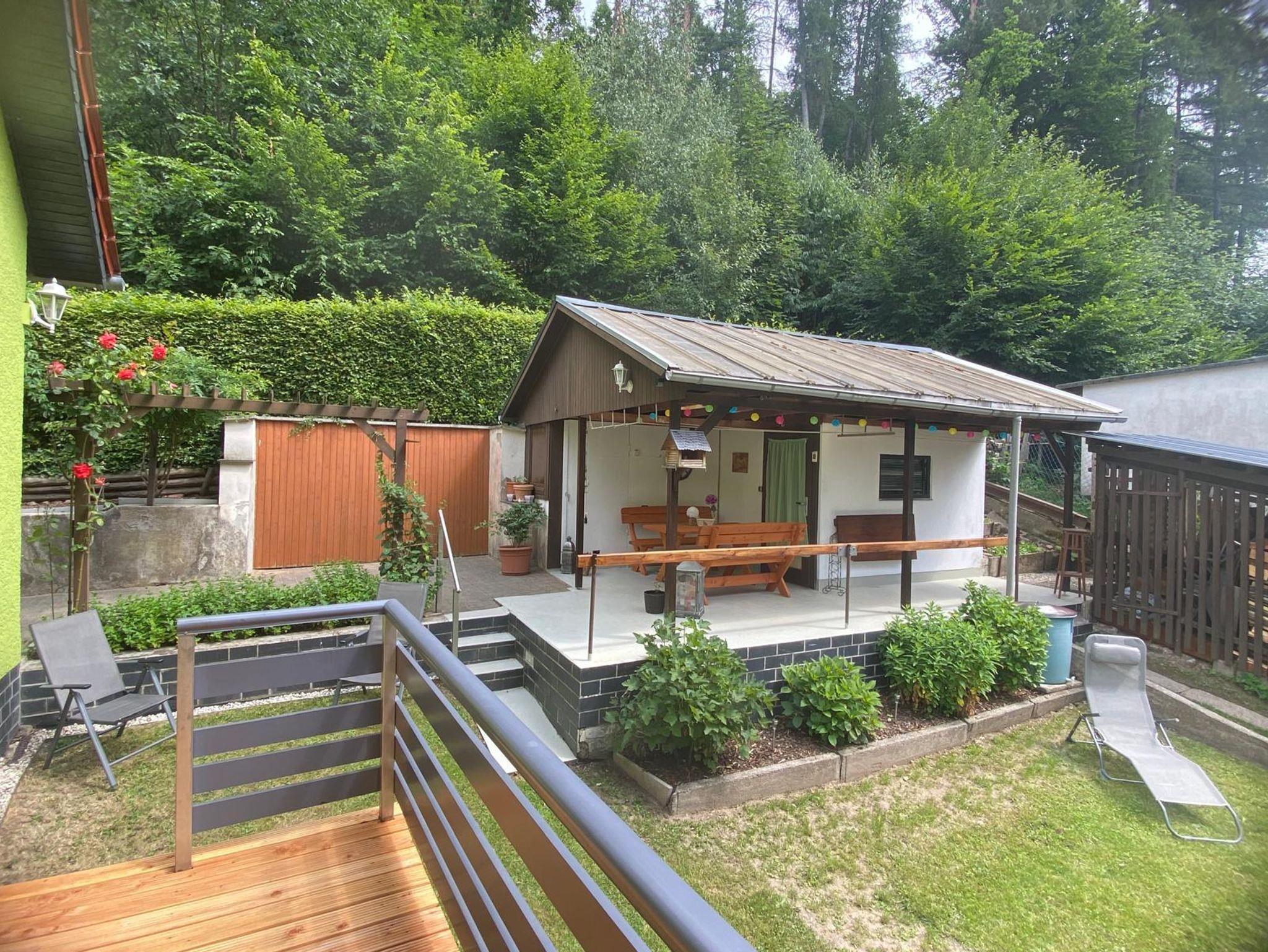 Unser schöner Garten und zwei Terrassen laden zum Verweilen, Sonnenbaden und Grillen ein. Stellplätze für PKW und Fahrräder befinden sich am Haus. Die Bushaltestelle liegt 100m vom Haus entfernt.