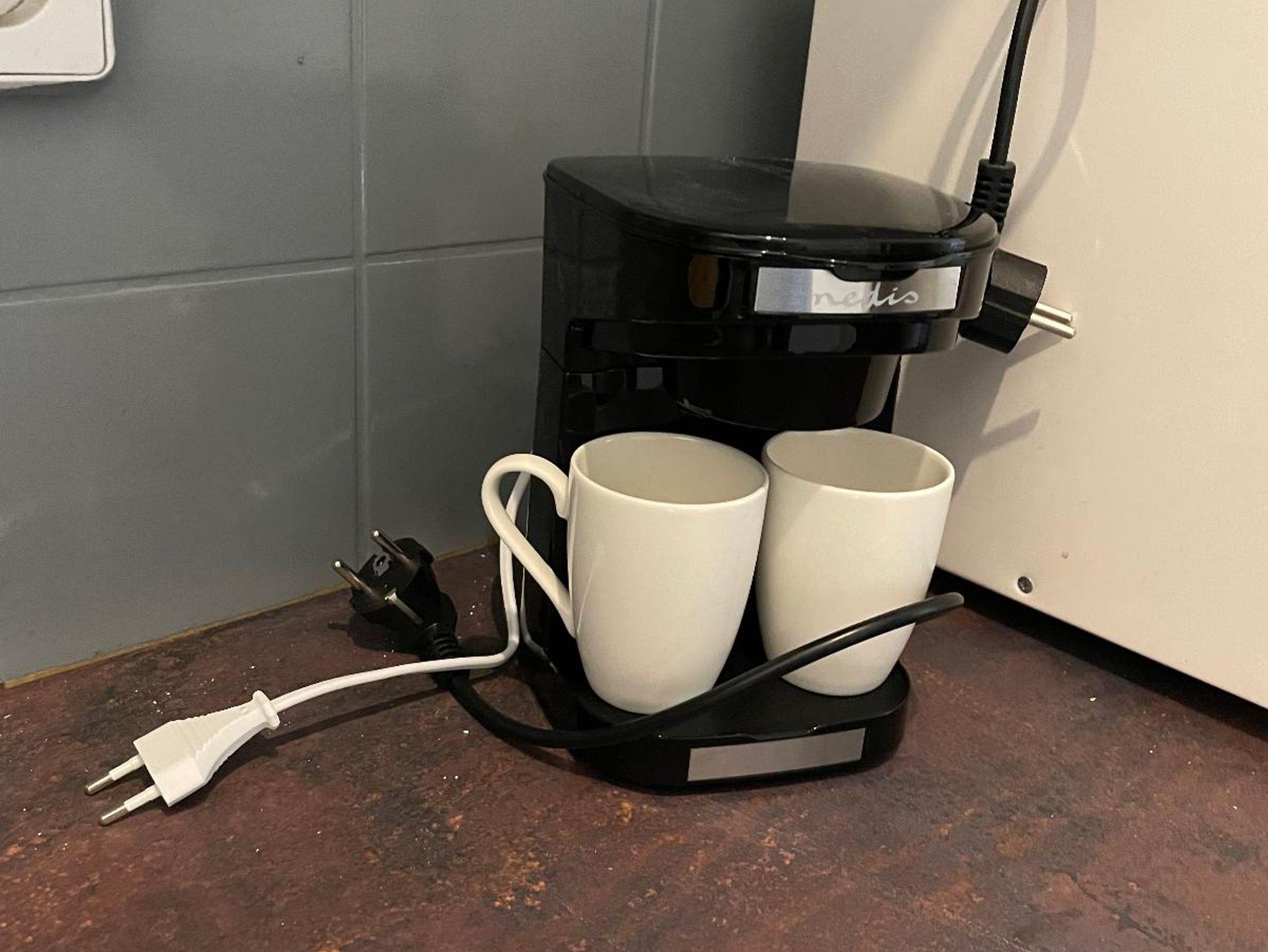Kaffeemaschine, Toaster, Kühlschrank mit Gefrierfach, Mikrowelle, Induktionskochfeld.
