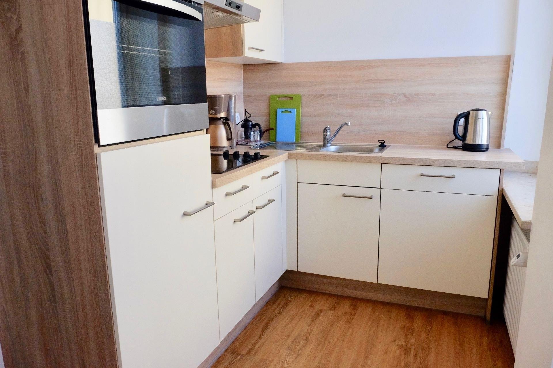 Ferienwohnung in sehr guter Lage mit direkter Busanbindung, 2 Stationen zur Therme, 150 Meter zum Stadtplatz. Komplett ausgestattet Küche.