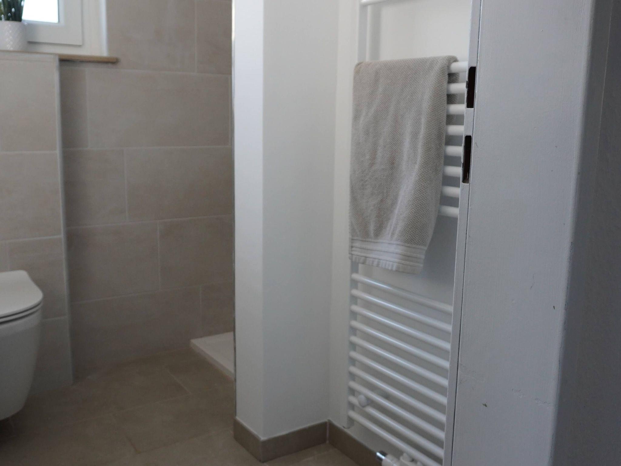 - Modernes Badezimmer mit Dusche, Haartrockner